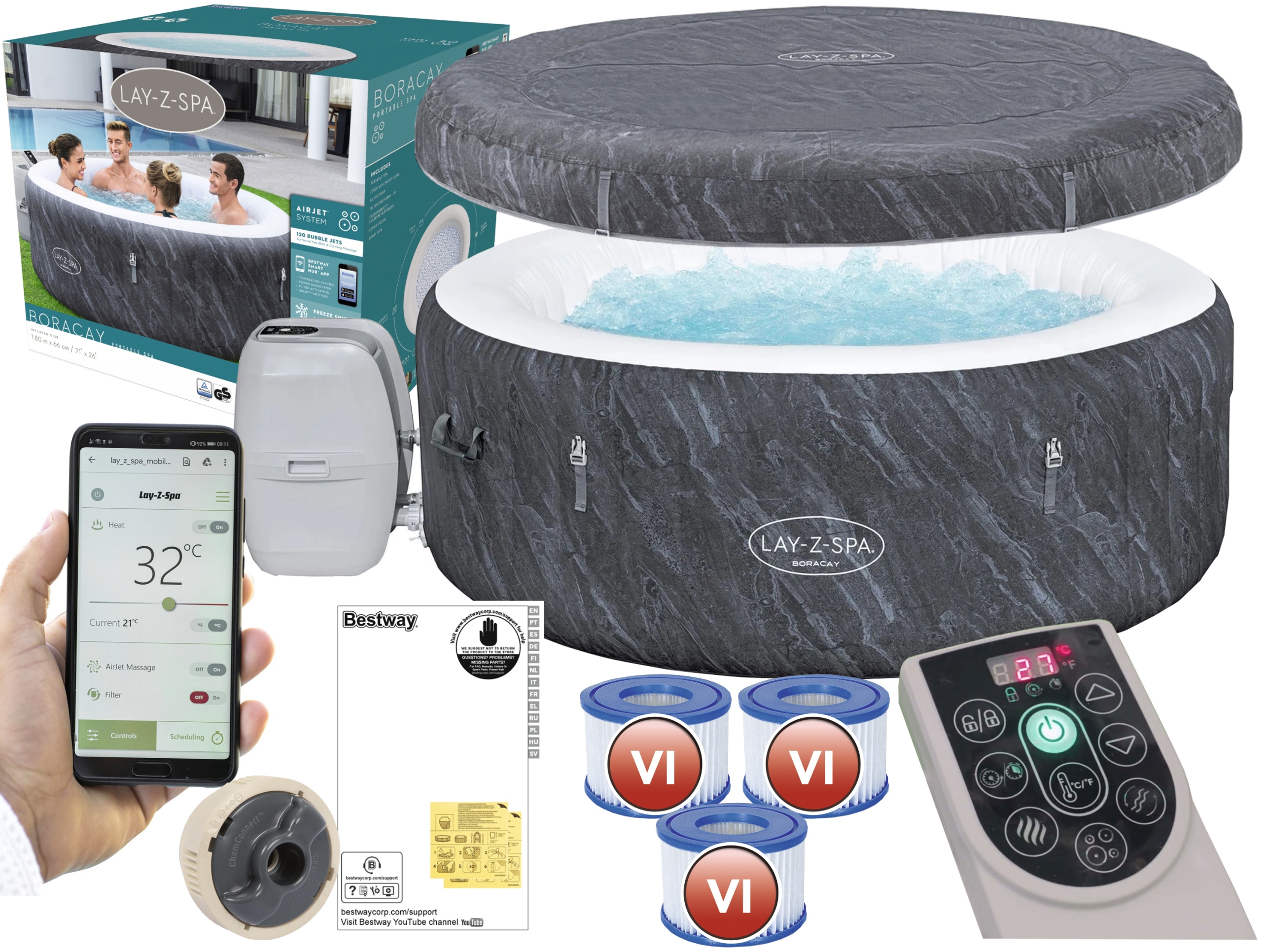 Спа садовий 180х66см Wi-Fi Підігрівач Кришка Насос Фільтри Bestway 60175