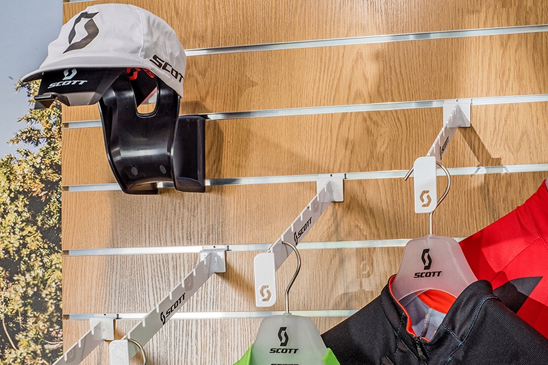 Панелі ідеально підходять для представлення товарів в магазинах різних галузей. З них ми виготовляємо настінні вітрини для продажу одягу та предметів декору. Їх можна використовувати для виготовлення торгових стендів. Ми пропонуємо аксесуари для магазинів, що відповідають панелям Spacewall: гачки та підвіски, полиці для магазинів, вішалки для одягу, вішалки для перегляду одягу, багнети, прямі та кутові вішалки для Spacewall, вішалки для окулярів Spacewall, вішалки для ювелірних виробів та годинників.