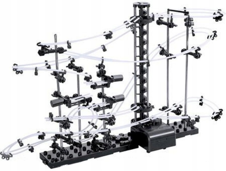 Поєднання всіх елементів нарешті створює велику доріжку, по якій рухаються металеві кульки.