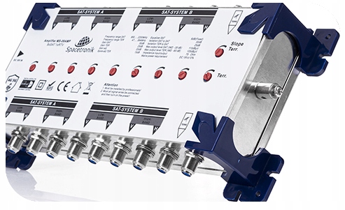 cascading amplifier for two satellite positions recommended for installation based on a cascade multiswitche with terrestrial television, thanks to which we can stabilize the quality of the supplied signal, in a situation where you need to cascatt the quality of the signal, when we need to casquently casco the large amount of multiswitch or exist, Мультисвіті або мультисвіті та антени. Перевага підсилювача Spacetronik-це дуже високий максимальний рівень виходу підсилювача SAT та DVB-T. Такі хороші параметри дозволяють встановити підсилювач на невеликих відстанях від SAT.