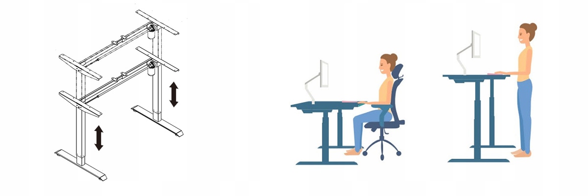 Spacetronik SPE-231 чорного кольору - це електрична рама, на якій можна побудувати справжній ергономічний стіл з електричним регулюванням. Електрична рама має два двигуни, що забезпечують швидку і плавну зміну висоти стільниці. Регулювання дає відчуття комфорту та можливість відповідати індивідуальним потребам працівника, а також може впливати на ефективність роботи. Стіл з електрорегулюванням дозволяє щодня працювати в положенні стоячи, що благотворно впливає, наприклад, на кровообіг і знижує ризик набору додаткових кілограмів. Стоячи, ми також можемо набагато легше підтримувати правильну поставу тіла - за що в першу чергу нам буде вдячний наш хребет.