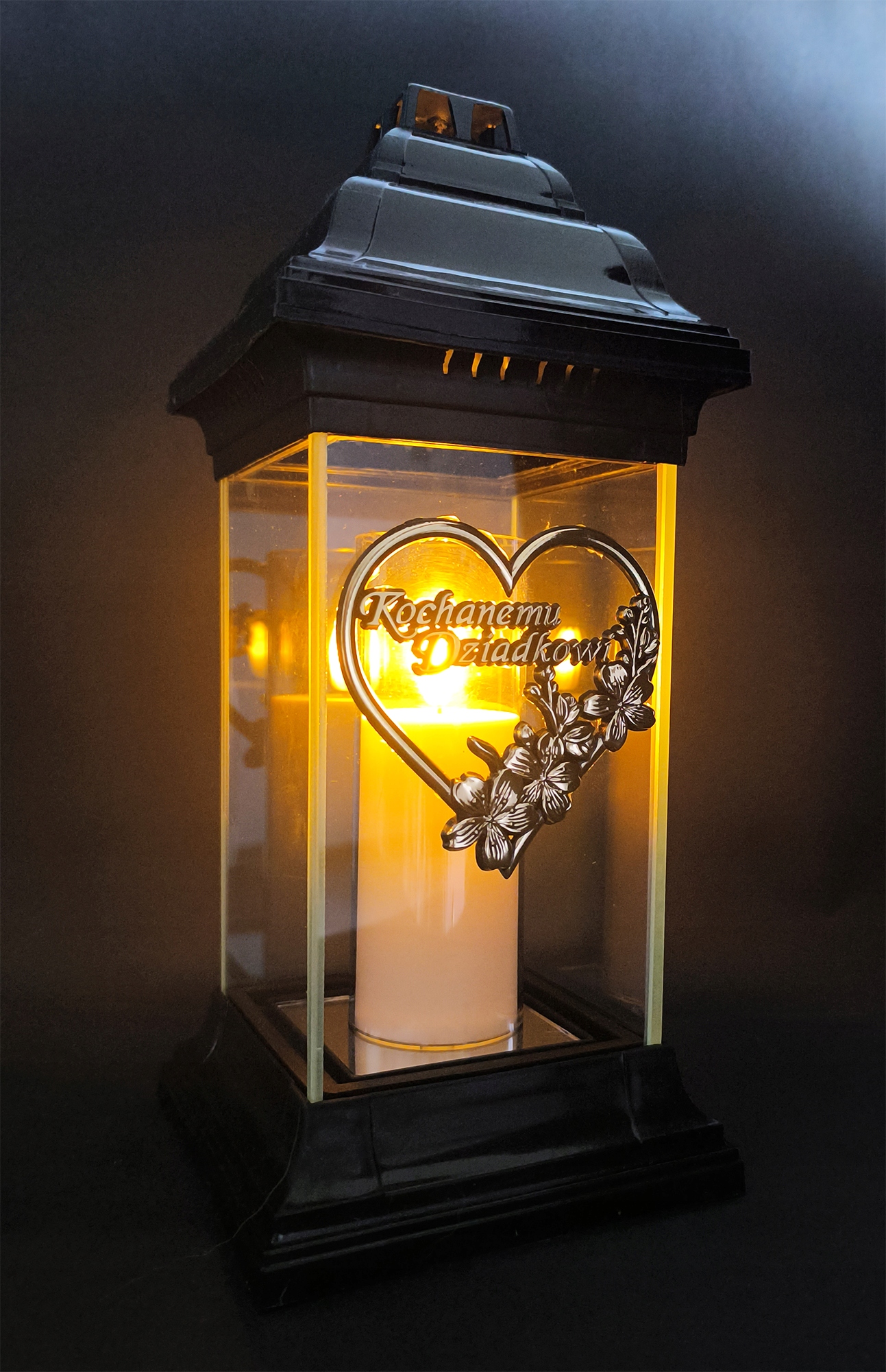 Святочка для дідуся з товстого безбарвного скла. В середині келиха велике золоте серце з присвятою коханому дідусеві. Свічка важка, міцна, а широка основа забезпечує стійкість.