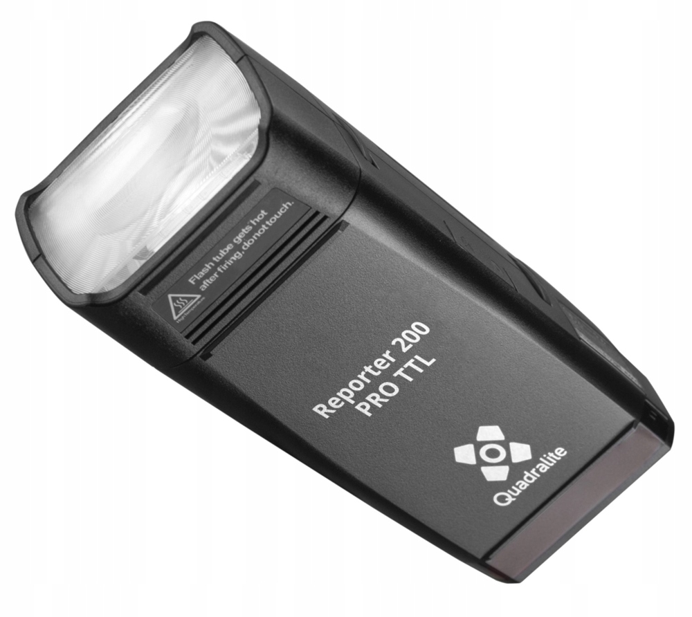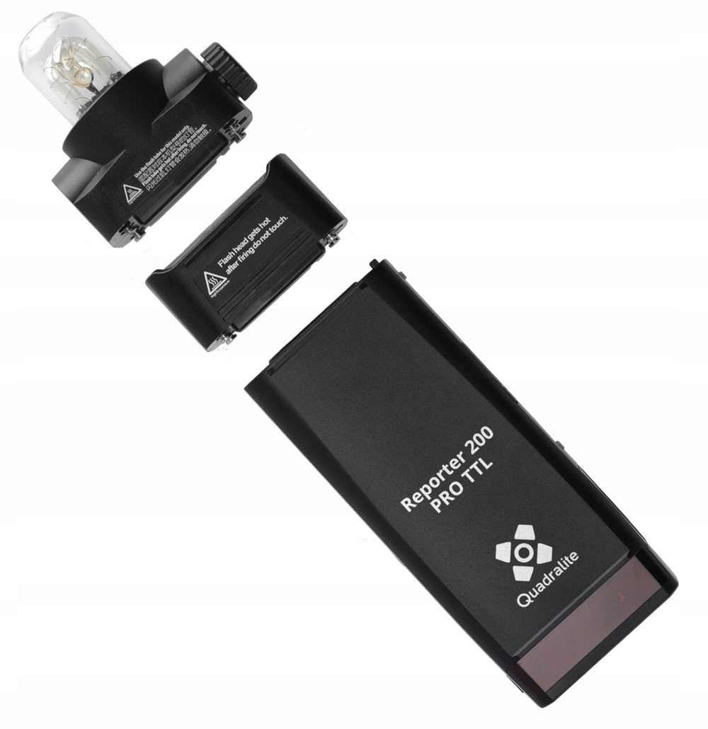 Лампа Reporter 200 Pro відрізняється дуже широким діапазоном регулювання енергії спалаху, який допускає налаштування в діапазоні від 200 до 0,8 Вт. Це забезпечує виняткову гнучкість вибору потужності, що дозволяє використовувати Reporter 200 Pro TTL як у студії, так і на відкритому повітрі, регулюючи його відповідно до доступного освітлення. Крім того, регеляцію можна виконувати надзвичайно точно з кроком 1/10 стопи діафрагми. Зручний дизайн і невелика вага означають, що Quadralite Reporter 200 Pro TTL можна легко заховати навіть у невеликій сумці або навіть кишені піджака. Лампа живиться від невеликого, але дуже ефективного літій-іонного акумулятора ємністю 2900 мАг, після повної зарядки (що займає до 3 годин) вистачає для здійснення до 500 спалахів на повній потужності. Крім лампи в набір входять: головка А (з лінзою Френеля), головка В (з відкритою пальником), кріплення на штатив, акумулятор, зарядний пристрій, кришка та інструкція користувача.