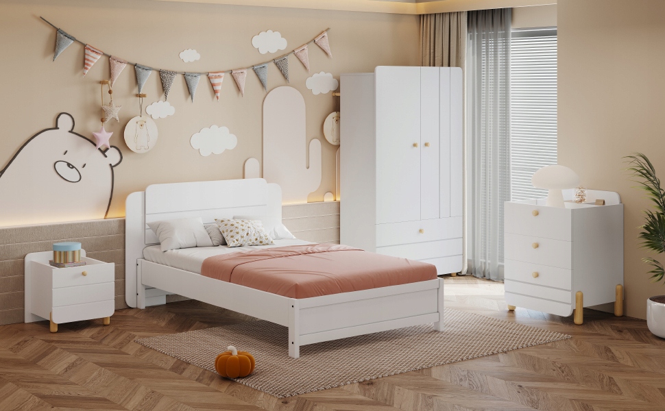 Багато місця для зберігання: Комод і шафа пропонують багато місця для зберігання одягу, іграшок та аксесуарів і допомагають зберегти кімната охайна. Тумбочки гарні та компактні, в них можна легко зберігати найнеобхідніші речі, такі як книги та лампи.