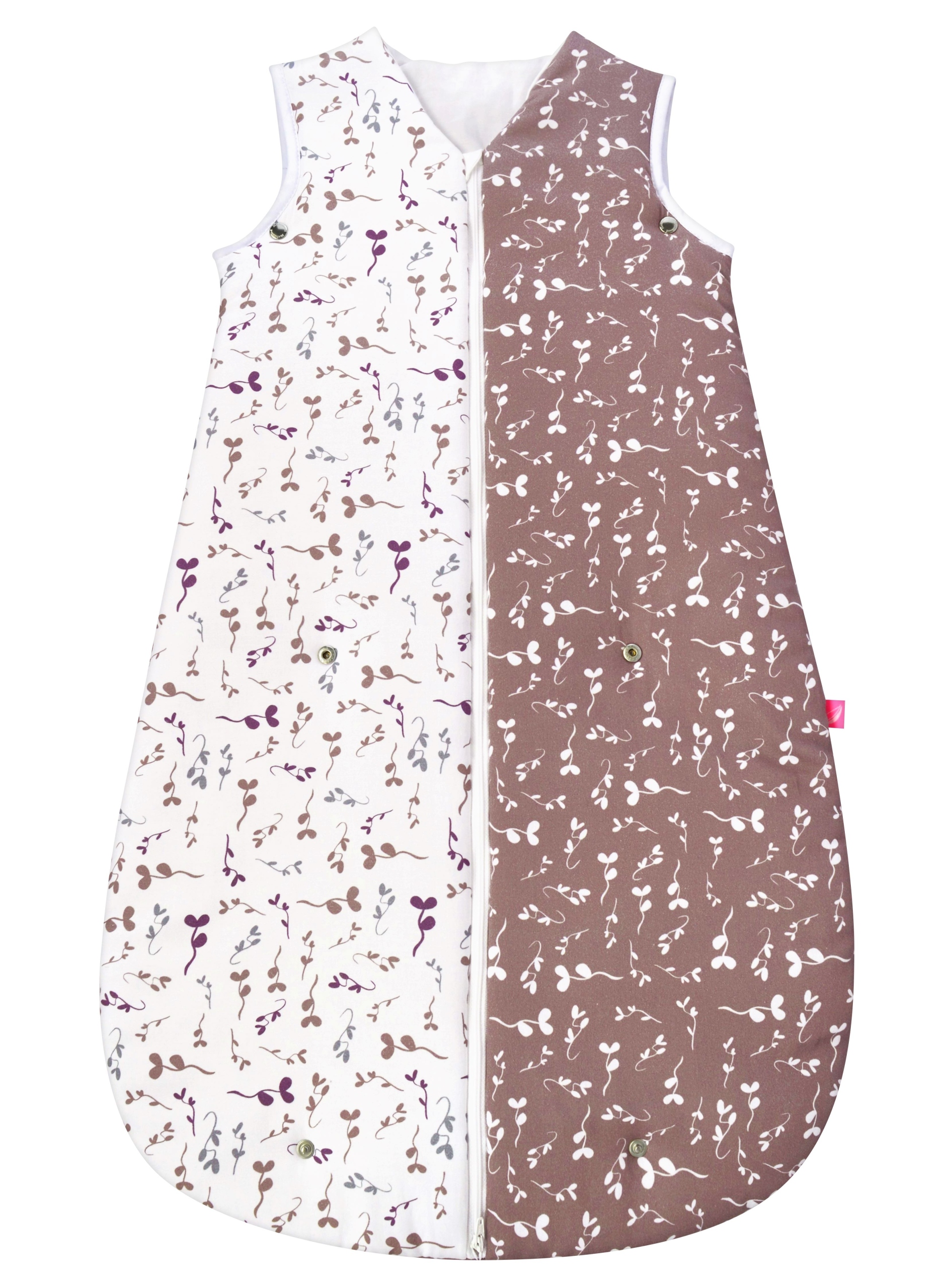Завдяки вкладці, що закривається кнопками, спальний мішок 2-в-1 росте разом з дитиною, пропонуючи два розміри в одному: 3-6 місяців із закритою нижньою вкладкою та 6-18 місяців. з відкритою вкладкою. Додаткові кнопки дозволяють зменшити отвори під пахвами (для дітей до 4,5 кг).
