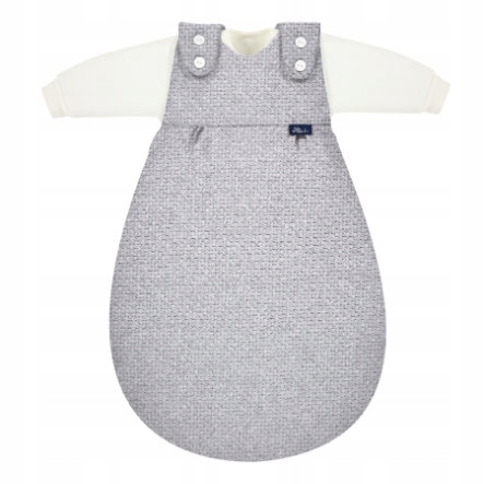Тканина Baby-Mäxchen® Sepcial, виготовлена зі зручного м’якого бавовняного трикотажу, складається, як і всі Alvi Baby-Mäxchen®, із трьох спальних мішків: злегка посиленого зовнішнього спального мішка подвійного розміру із застібкою-блискавкою по периметру та двох внутрішніх спальних мішків. сумки з довгими рукавами і манжетами трикотажні. Інтелектуальну систему можна адаптувати до будь-якої температури: у спекотні літні ночі внутрішній спальний мішок також можна використовувати окремо.