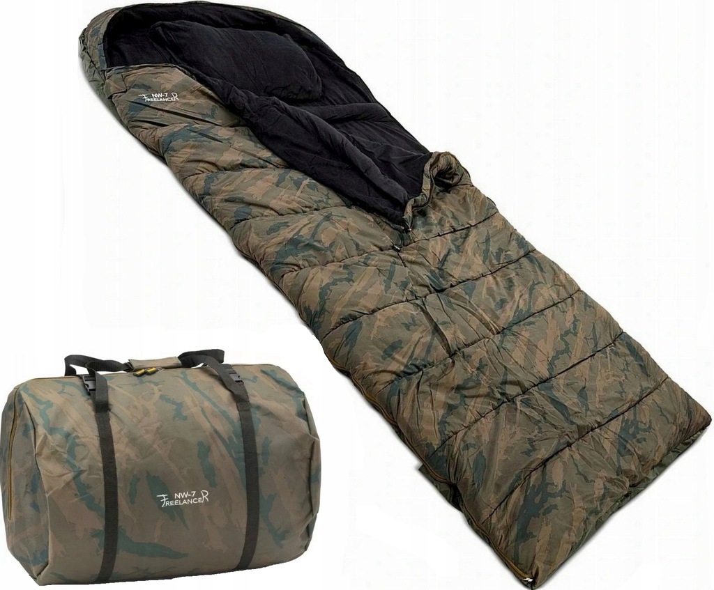 NW 7 — це великий і, перш за все, дуже зручний спальник у середньому ціновому сегменті. Неймовірний комфорт у поєднанні з найякіснішими матеріалами - ось відмінні риси NW-7. у новому стилі Freelancer Camou. Кишеня в голові та ногах закріплює спальний мішок і допомагає йому ідеально прилягати до шезлонга. Підкладка з флісу. Якісні блискавки, водонепроникний зовнішній матеріал. Додаткове відділення на блискавці в спальному мішку для дрібних деталей Гачок: діаметр окружності та клапани для частин голови та ніг інтегрована Подушка (за бажанням знімна), включаючи транспортну сумку з поліестеру 600