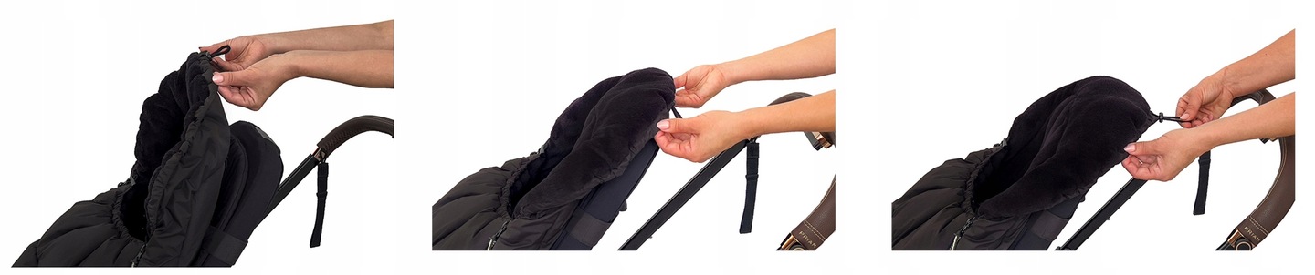 - дві ремінці Velcro з боків спального мішка дозволяють кріпити його по черзі до ручки або спинки коляски,
