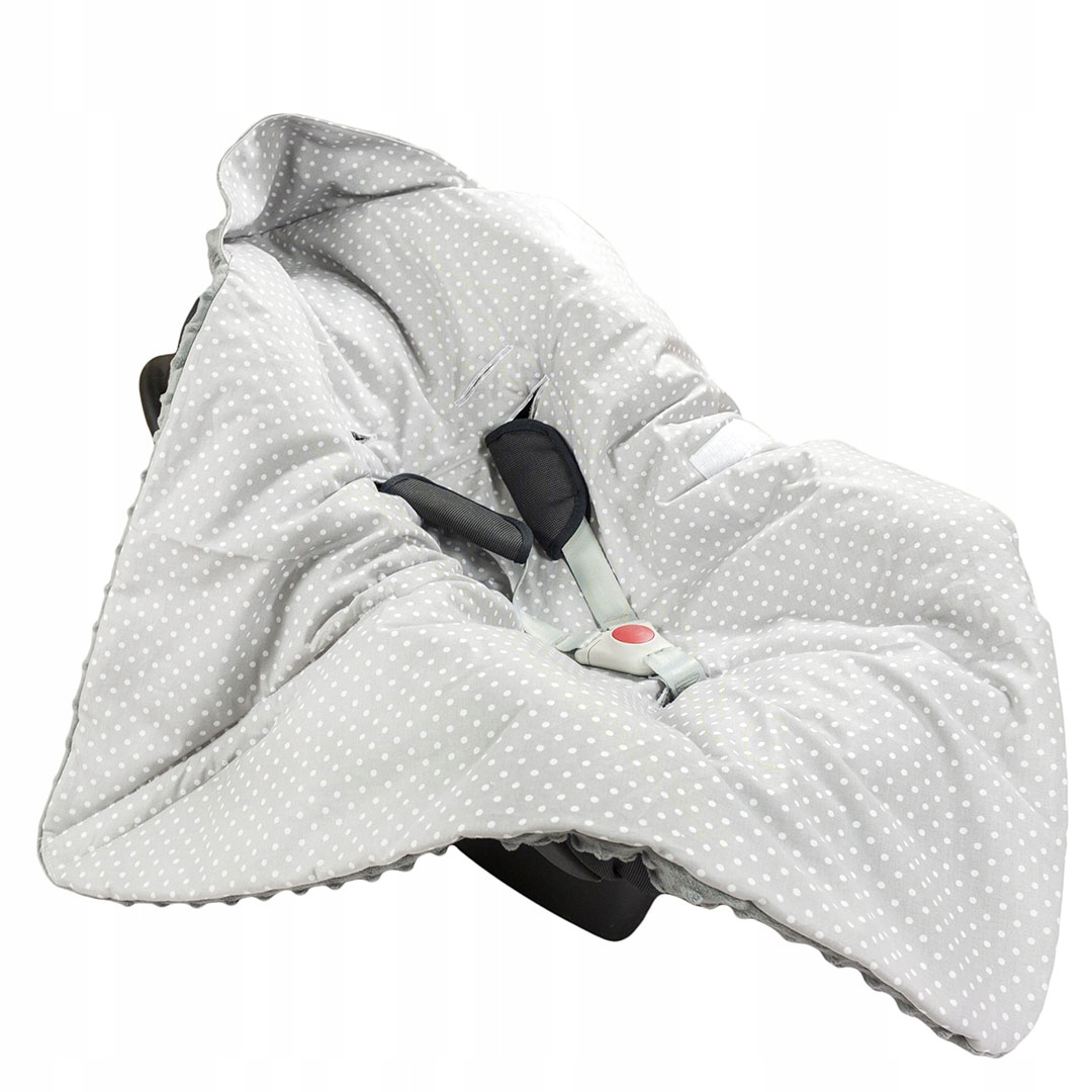 Отвори для ременів (3-точкові) розміщені у відповідних місцях. місця, завдяки яким ковдра підходить для більшості сидінь, колясок, качалок, гондол і колясок.