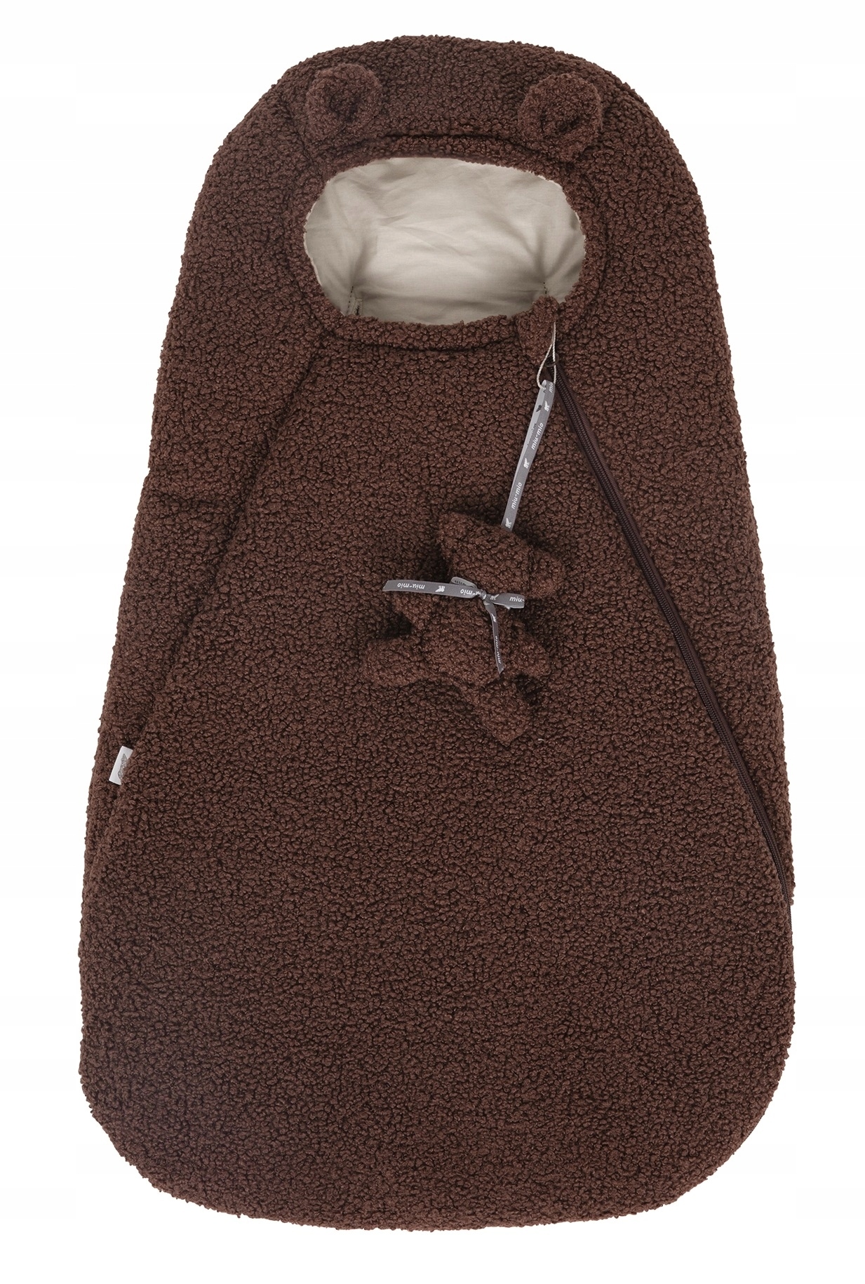 - спальний мішок має унікальний та затишний вигляд завдяки елегантній тканині букле зі структурою ягняти та чарівному капюшону, прикрашеному вухами ведмедика.