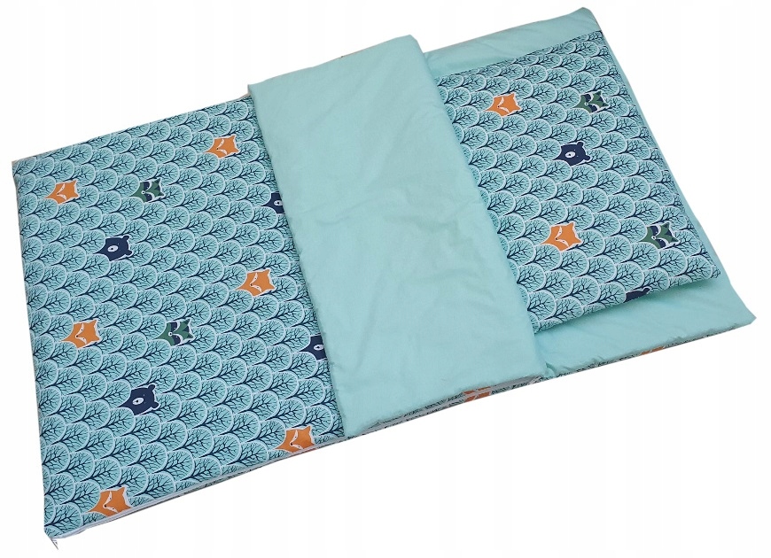 До подушки йде знімна наволочка в колір спального мішка. Вставка середньої товщини - приблизно 6 см.