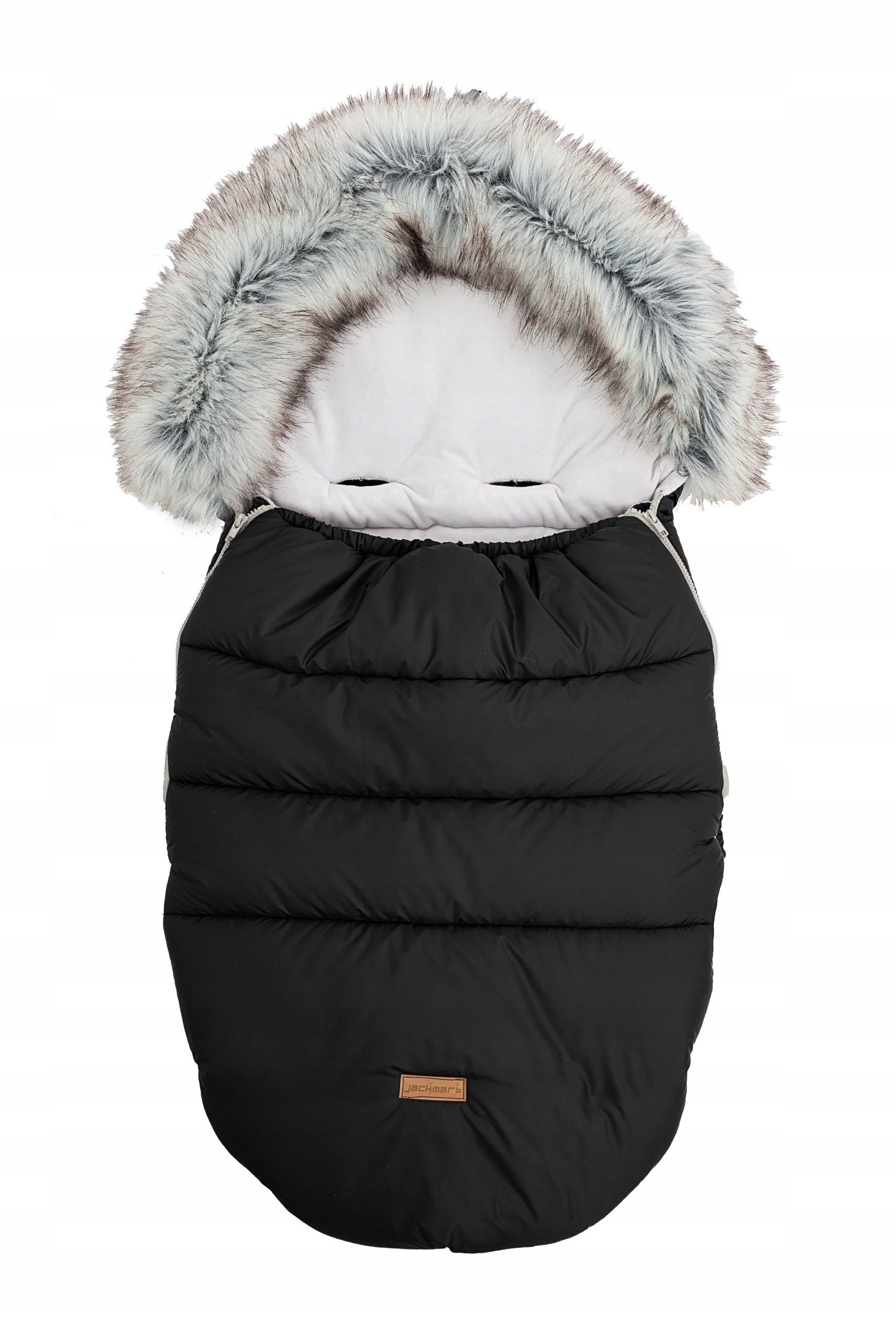 Форма спального мішка була розроблена, щоб підходити до більшості колясок і забезпечувати свободу рухів. Великий капюшон оздоблений красивим штучним хутром, схожим на натуральний песець. Це покращує тепловий комфорт і робить спальний мішок ще затишнішим. При необхідності хутро можна повністю зняти.