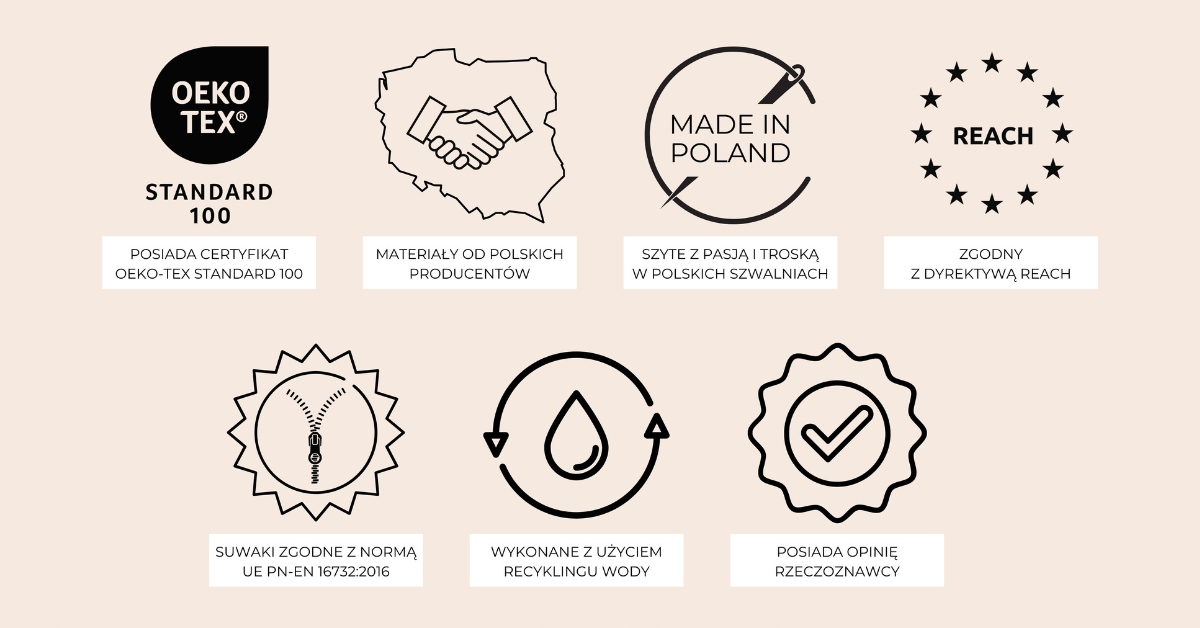 М'яка 100% бавовняна тканина , з якої ми натурально ширяємо спальні мішки і обережно обернемо чутливу шкіру дитини. Це сертифіковано, виробляється для нас у Польщі і відповідає стандартам безпеки ЄС для дитячої шкіри. Ми наповнили спальний мішок на осінь і зиму теплим фібрином. Все це так, щоб у нашому спальному мішку було тепло і м'яко.