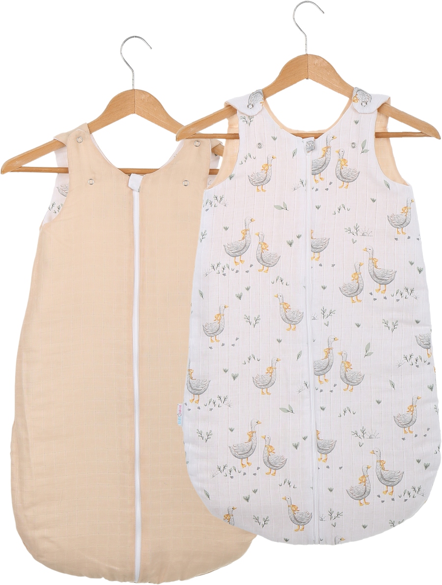 Ми виготовили його з ніжного мусліну, з двома кольорами, які гармонійно доповнюють один одного. Ви можете використовувати його двостороннім, як вам більше подобається. Форма спального мішка адаптована до розміру дитини у верхній частині та розширена в нижній частині, щоб забезпечити свободу для малюків, які починають спати тепер пізнають світ краще і вони рухливі (також під час сну, о так!). У положенні на животі дитина має достатньо місця для вільного розведення стегон і ніжок.