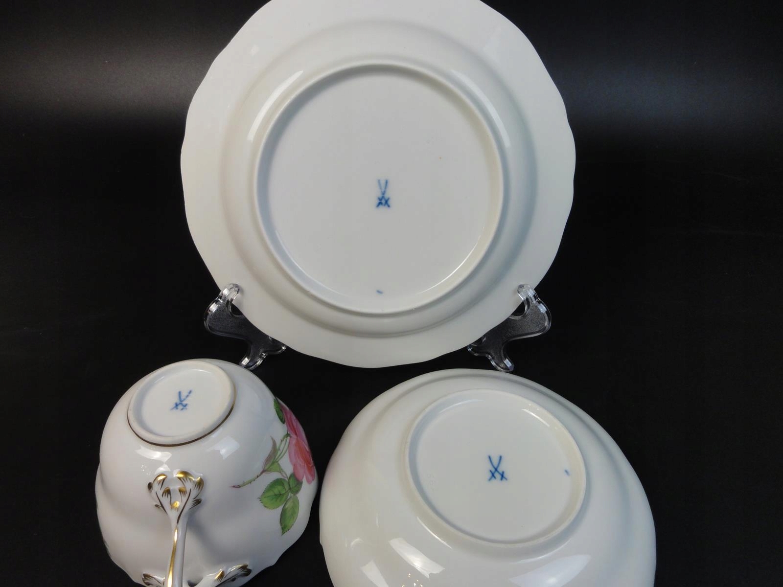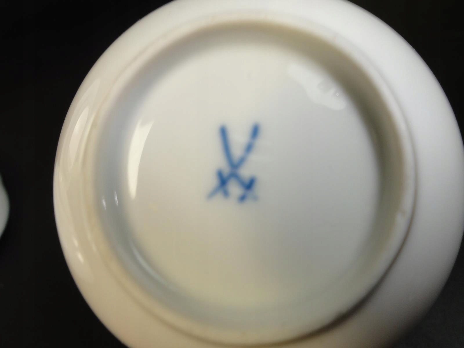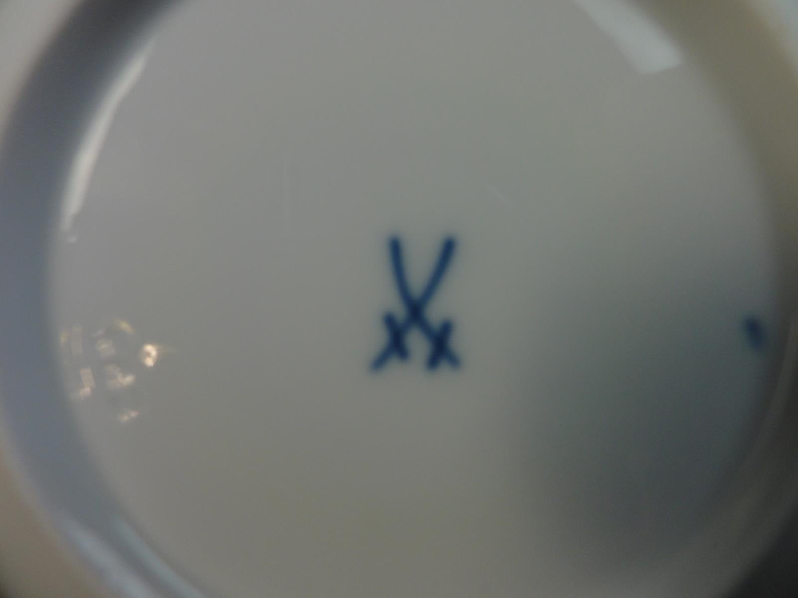 * підпис: Meissen, мечі з чотирма насічками на чашці та тарілці,