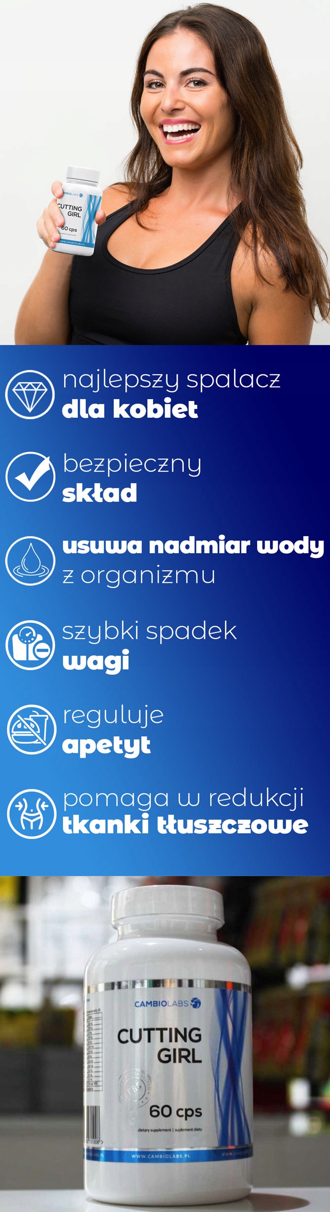 ✅CambioLabs CuttingGirl – це не тільки для тих, хто регулярно тренується. Вони також підійдуть людям, які хочуть скинути кілька зайвих кілограмів здоровим способом, без фізичних вправ. Однак варто зазначити, що фізична активність є одним із факторів, які прискорюють спалювання жиру, і будь-яка форма додаткових вправ вітається, але не є обов’язковою для досягнення ефекту.