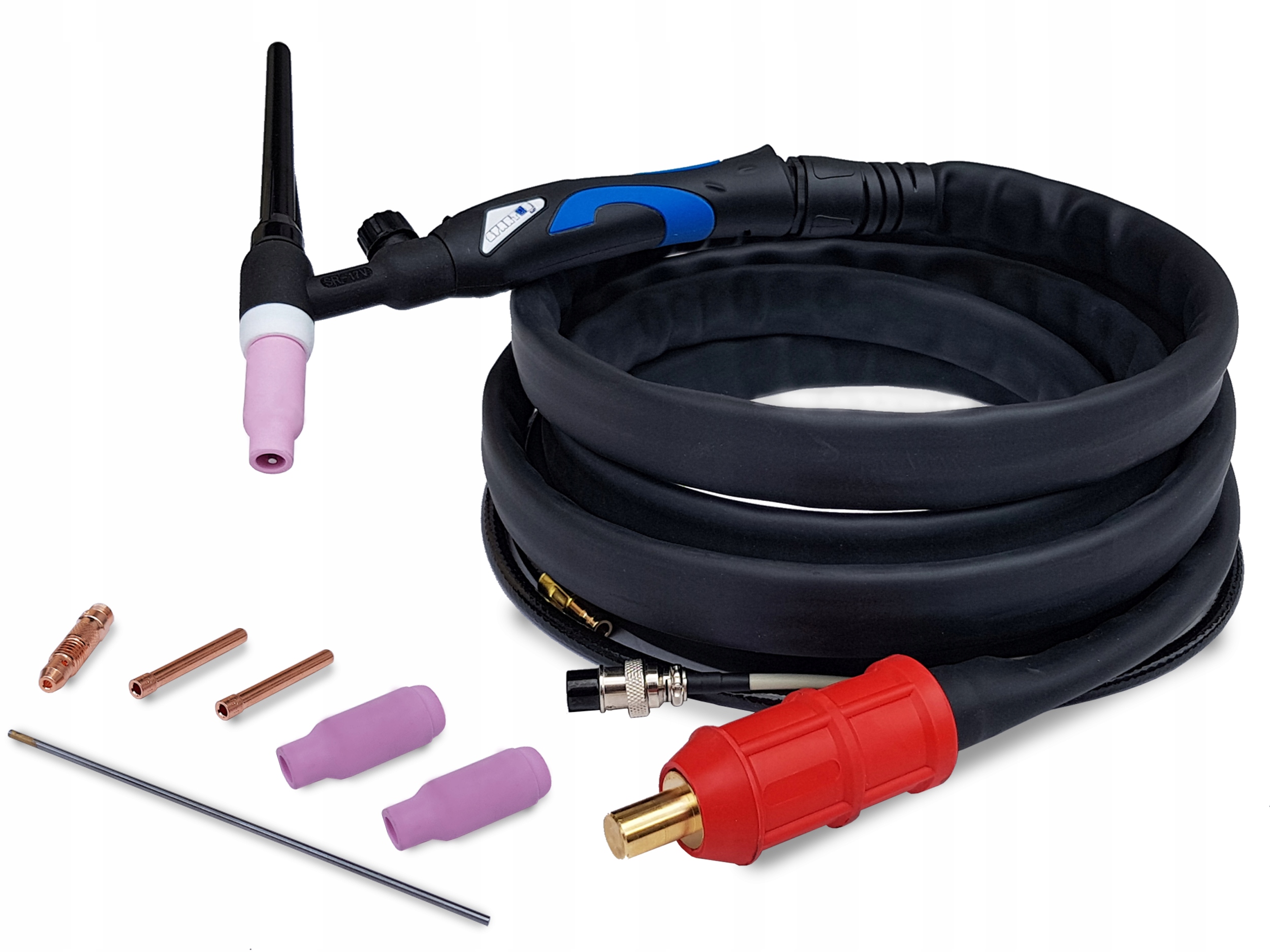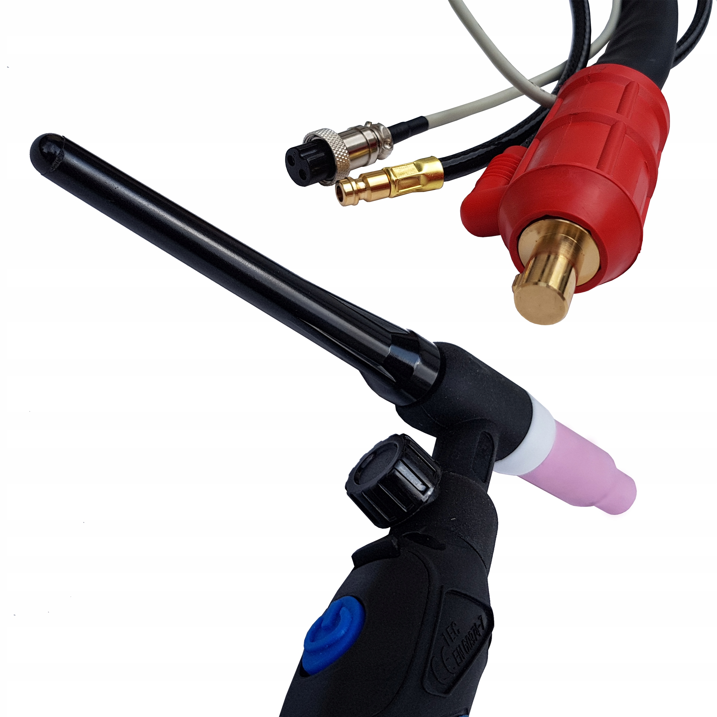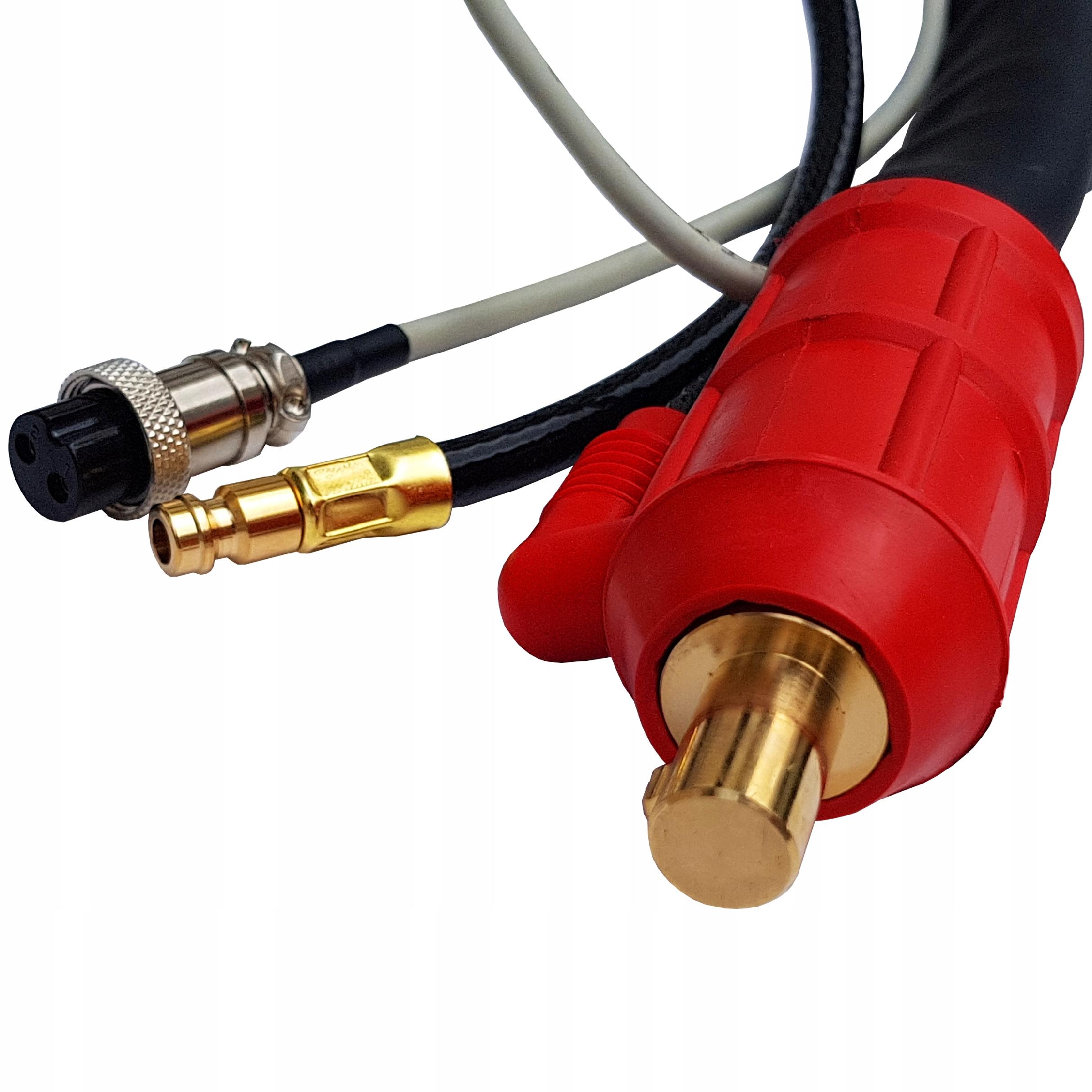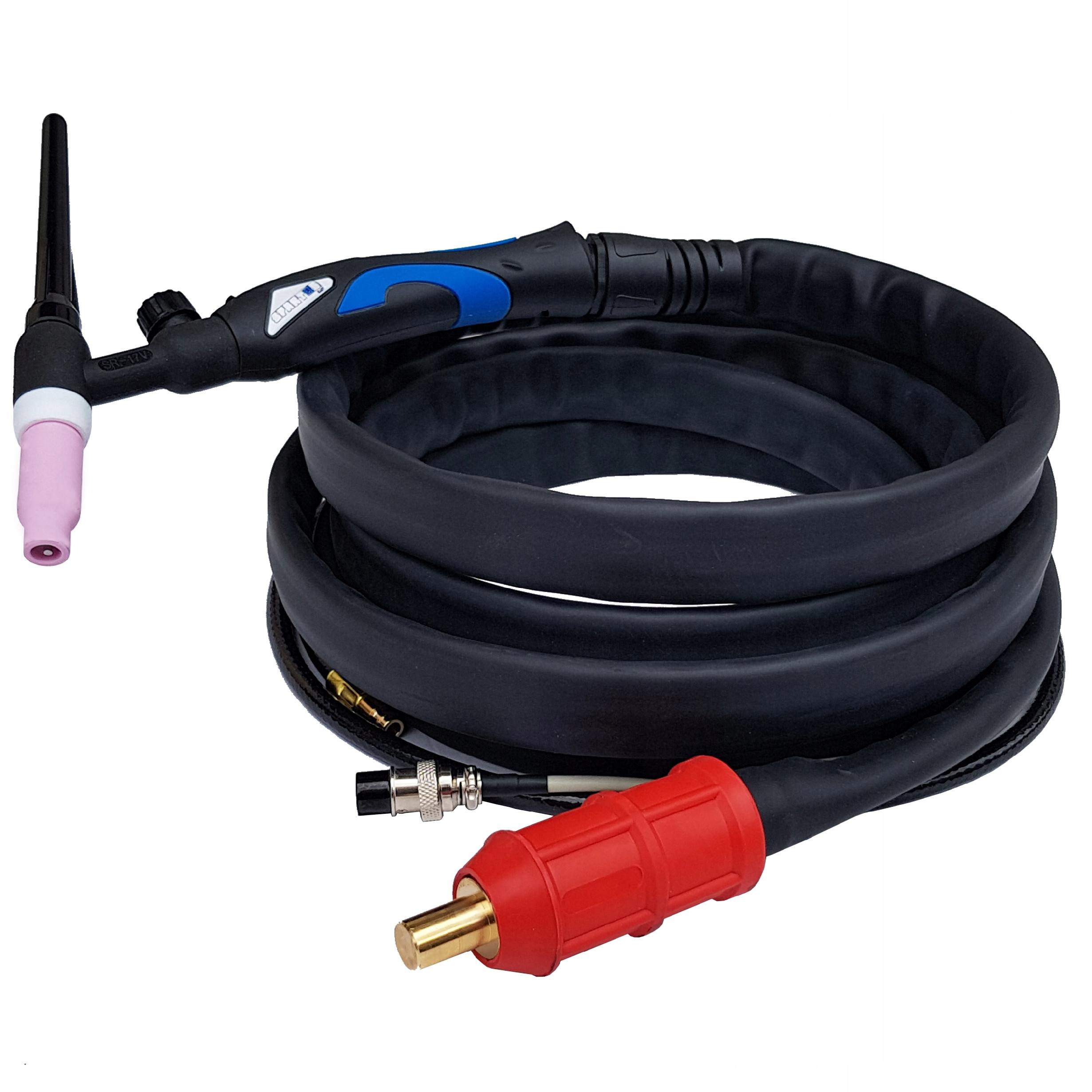 Рукоятка для зварювання TIG із з'єднанням ŁW 35-50. Він повністю озброєний і готовий до роботи.