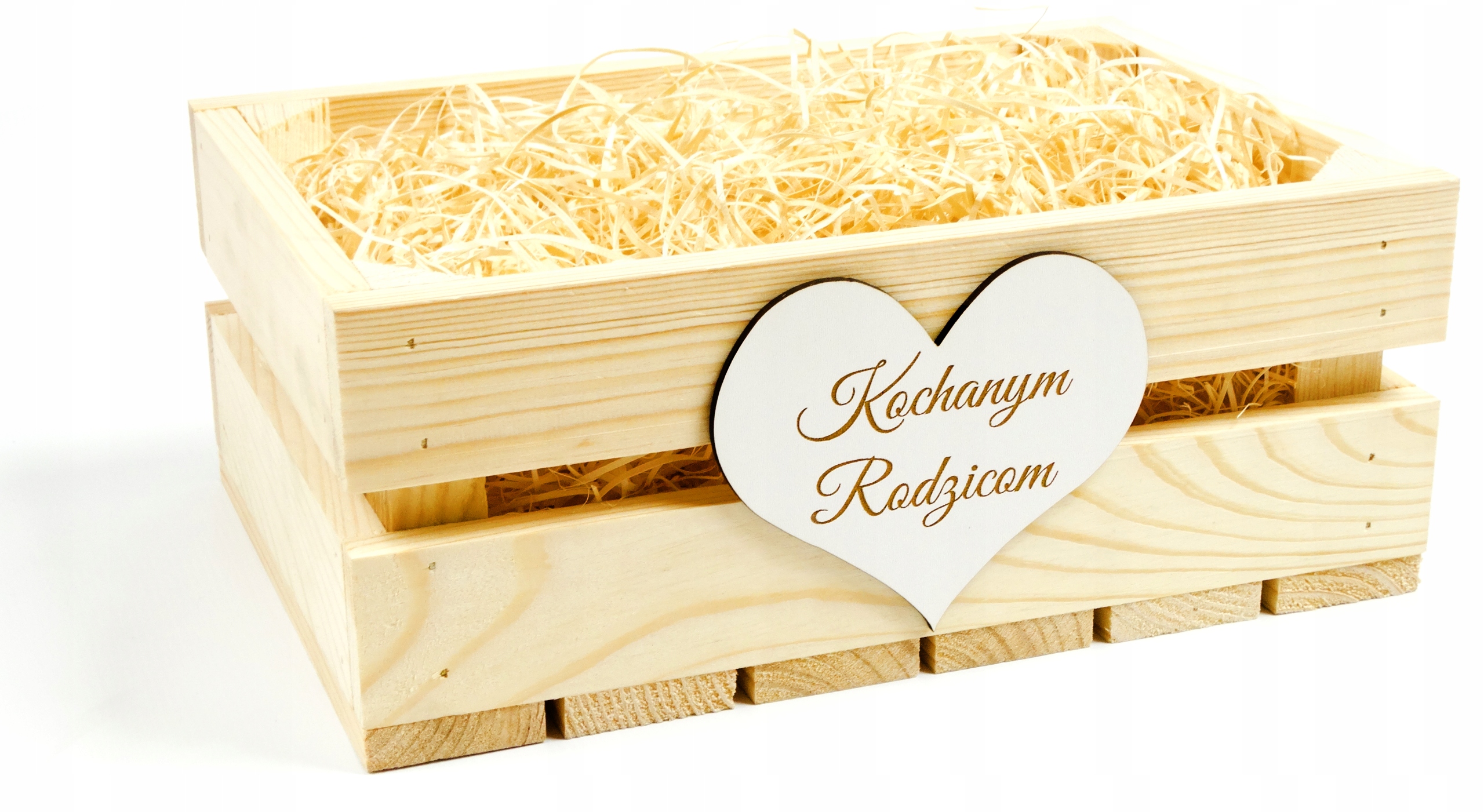 Дерев'яна скринька натурального кольору з білим вигравіруваним серцем. Коробка чудово підійде як подарунок батькам, хрещеним батькам, бабусям і дідусям, свідкам чи іншим близьким вам людям.