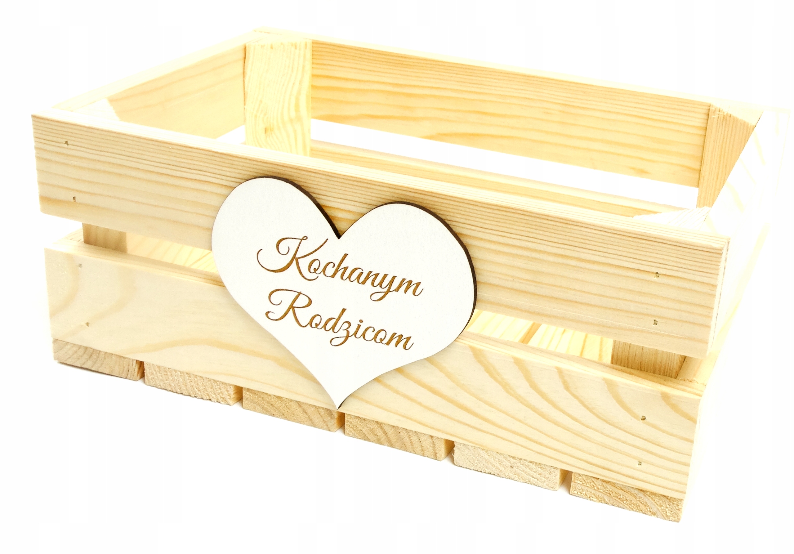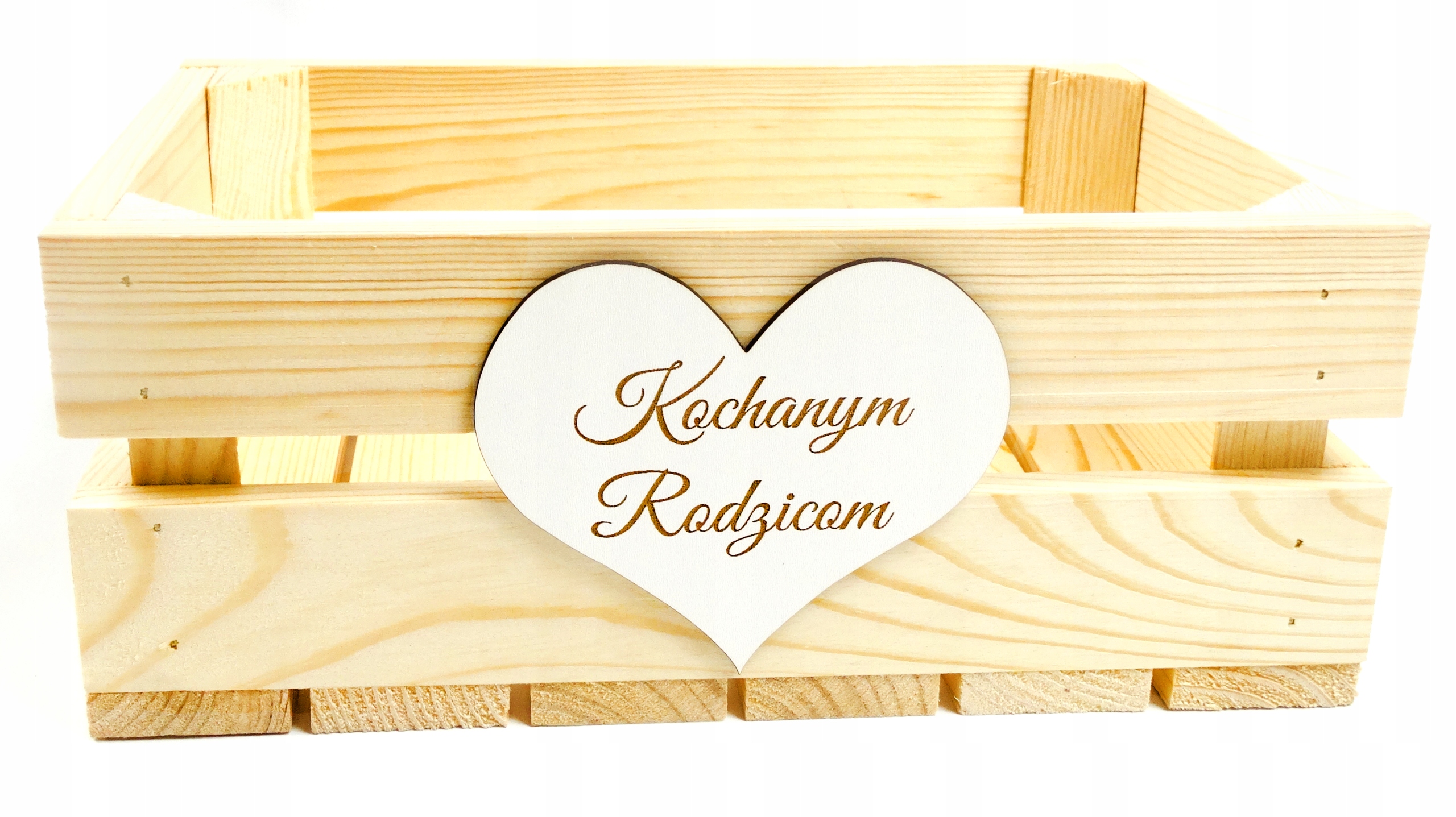 Дерев'яна скринька натурального кольору з білим вигравіруваним серцем. Коробка чудово підійде як подарунок батькам, хрещеним батькам, бабусям і дідусям, свідкам чи іншим близьким вам людям.