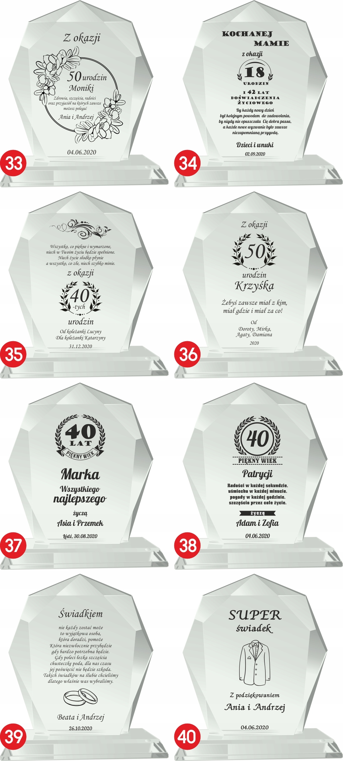 Якщо є інші зміни, вкажіть їх точно - опишіть їх нам детально. Якщо вибраний номер гравіювання потребує додаткових змін або інших даних, будь ласка, внесіть їх у примітку до продавця або надішліть окремою електронною поштою. >Якщо ваші дані неповні, ми не зможемо обробити та відправити ваше замовлення. Ми не несемо відповідальності за будь-які затримки внаслідок неповного відправлення замовлення. Якщо лист подяки буде передано вашій мамі, батькові або іншій особі, будь ласка, опишіть це детально. Продавець повідомляє, що вироби з кришталю можуть містити дрібні подряпини на поверхні та бульбашки повітря, що виникають у процесі виробництва.