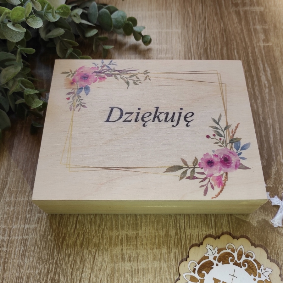 - На коробці зверху декоративний барвистий УФ-друк. Принт дуже міцний. Вибір шаблону друку та подяки можна знайти на аукціоні нижче.
