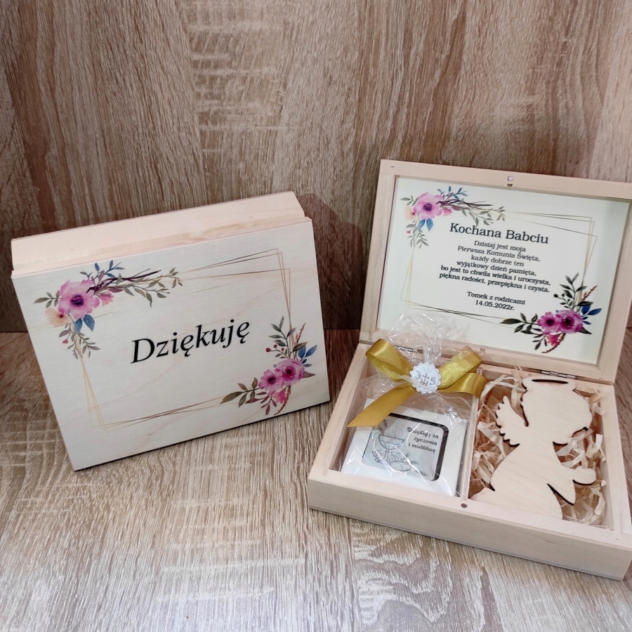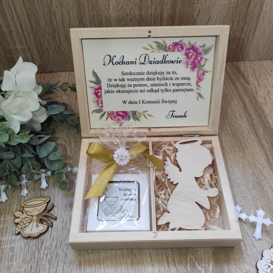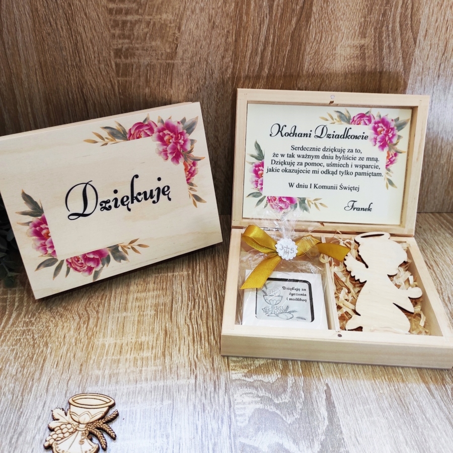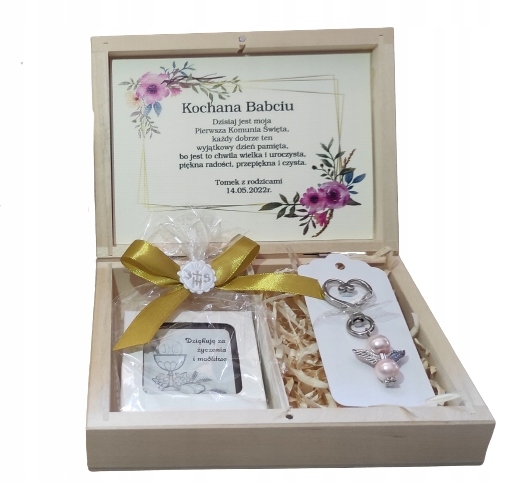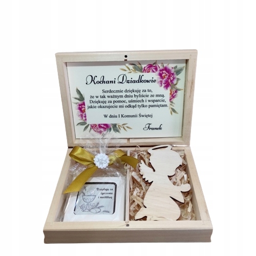 - Унікальна форма подяки за вашу присутність на Першому Святому Причасті для особливих гостей, наприклад, бабусь і дідусів чи хрещених батьків (ми адаптуємо текст подяка обраній особі : кума, кум, куми, бабуся, дідусь, бабуся, прадідусь)