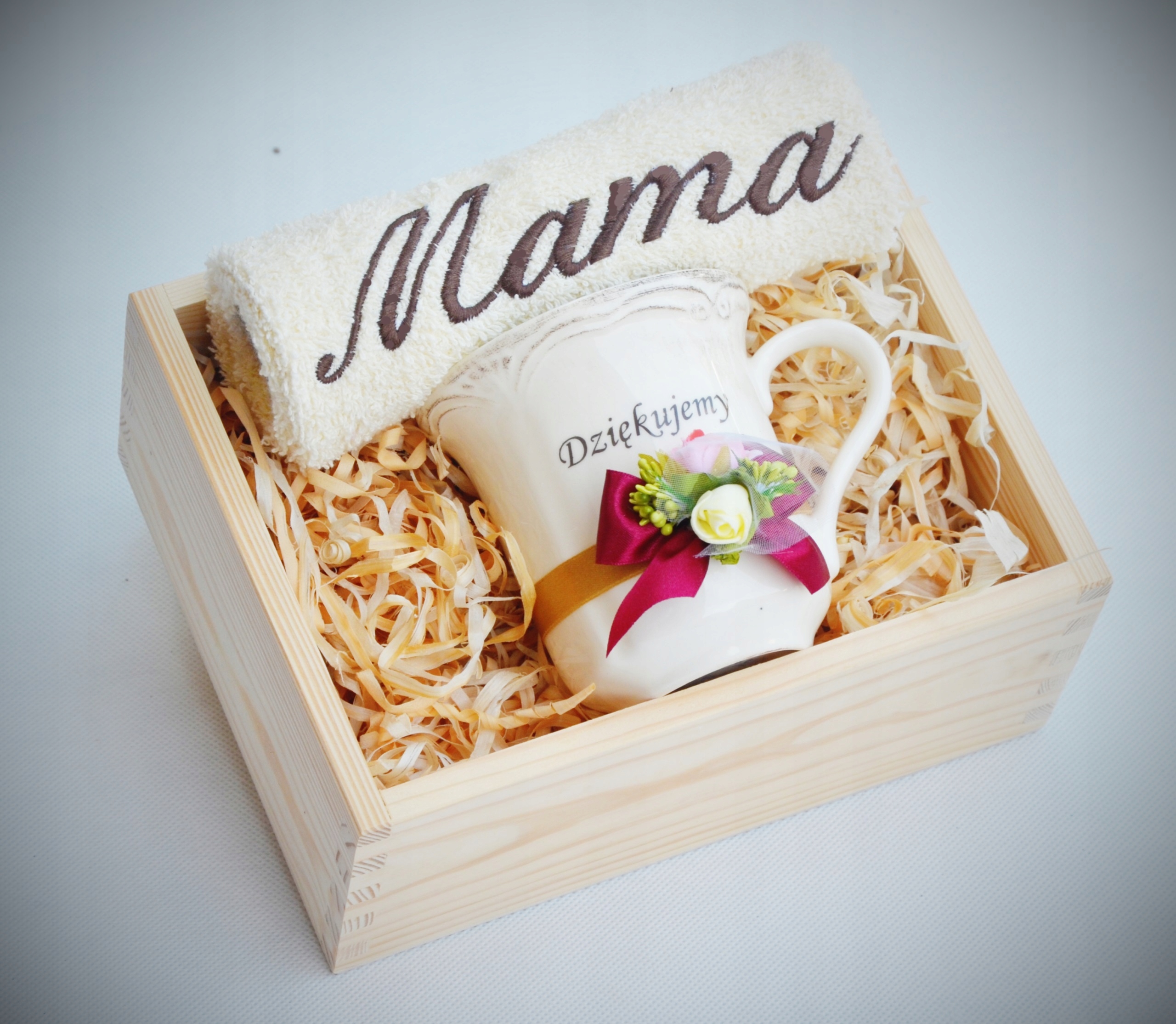 Elegant THANK YOU для мами і тата на весілля - практичний та оригінальний набір з високоякісної КУХЛІ з Ходзежського ФАРФОРУ та ТУСТНОГО рушника у версії Для мами чи тата - унікальний та ексклюзивний набір у дерев'яній коробці.