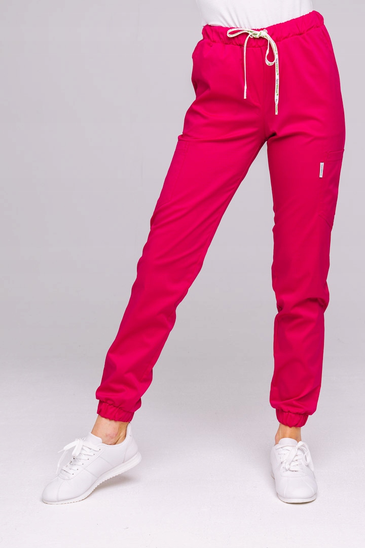 Про товар: Медичні бігові штани Модель Соня унікальна поєднання міцного, гнучкого матеріалу з високим вмістом плетіння бавовна з функціональним дизайном. Оснащений цілими шістьма кишенями, еластичними і шнурок на талії забезпечує комфорт і практичність у повсякденній роботі. Кишені боки і сідниці мають загострену форму, що надає їм легкості і елегантність. Завдяки спеціалізованому шиттю подвійною голкою та безпеці болти, штани міцні та стійкі до інтенсивного використання. гнучкий еластичний пояс і декоративний шнурок з логотипом забезпечують ідеальну посадку комфорт носіння. Звужений крій обтягує ноги, а вільні гумки на щиколотках вони додають стиль і свободу рухів. Виготовлений з матеріалу «Еластик», гарантує гнучкість і повітропроникність.