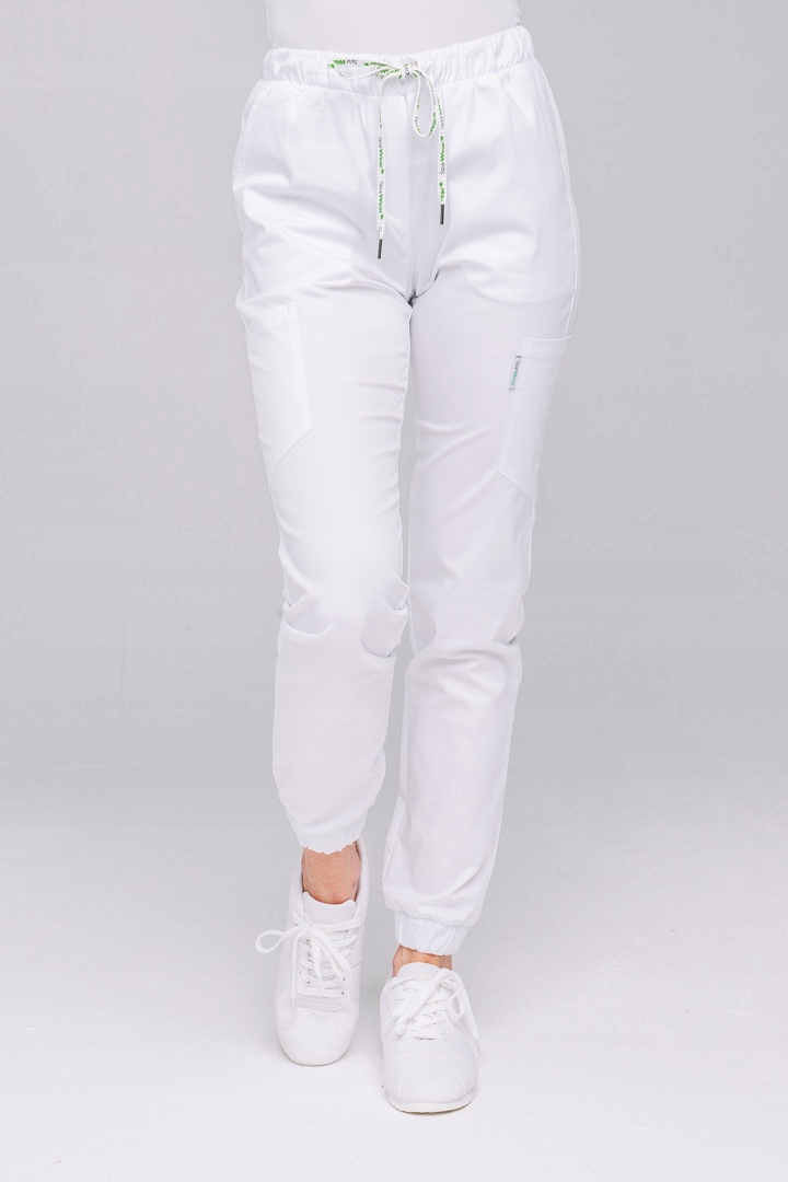 Про товар: Медичні бігові штани Модель Соня унікальна поєднання міцного, гнучкого матеріалу з високим вмістом плетіння бавовна з функціональним дизайном. Оснащений цілими шістьма кишенями, еластичними і шнурок на талії забезпечує комфорт і практичність у повсякденній роботі. Кишені боки і сідниці мають загострену форму, що надає їм легкості і елегантність. Завдяки спеціалізованому шиттю подвійною голкою та безпеці болти, штани міцні та стійкі до інтенсивного використання. Еластична гума на талії та декоративний шнурок з логотипом забезпечують ідеальну посадку та комфорт носіння. Звужений крій звужує ноги, а вільні гумки на щиколотках додають стилю і свобода пересування. Виготовлений з матеріалу "Elastic", гарантія еластичність і повітропроникність.
