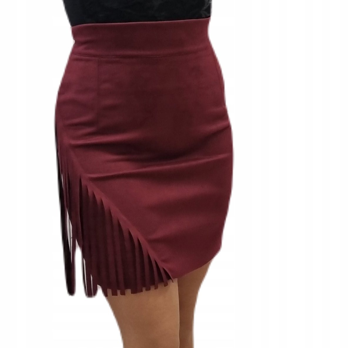 Spódnica zamsz bordowa z frędzlami 50 cm boho