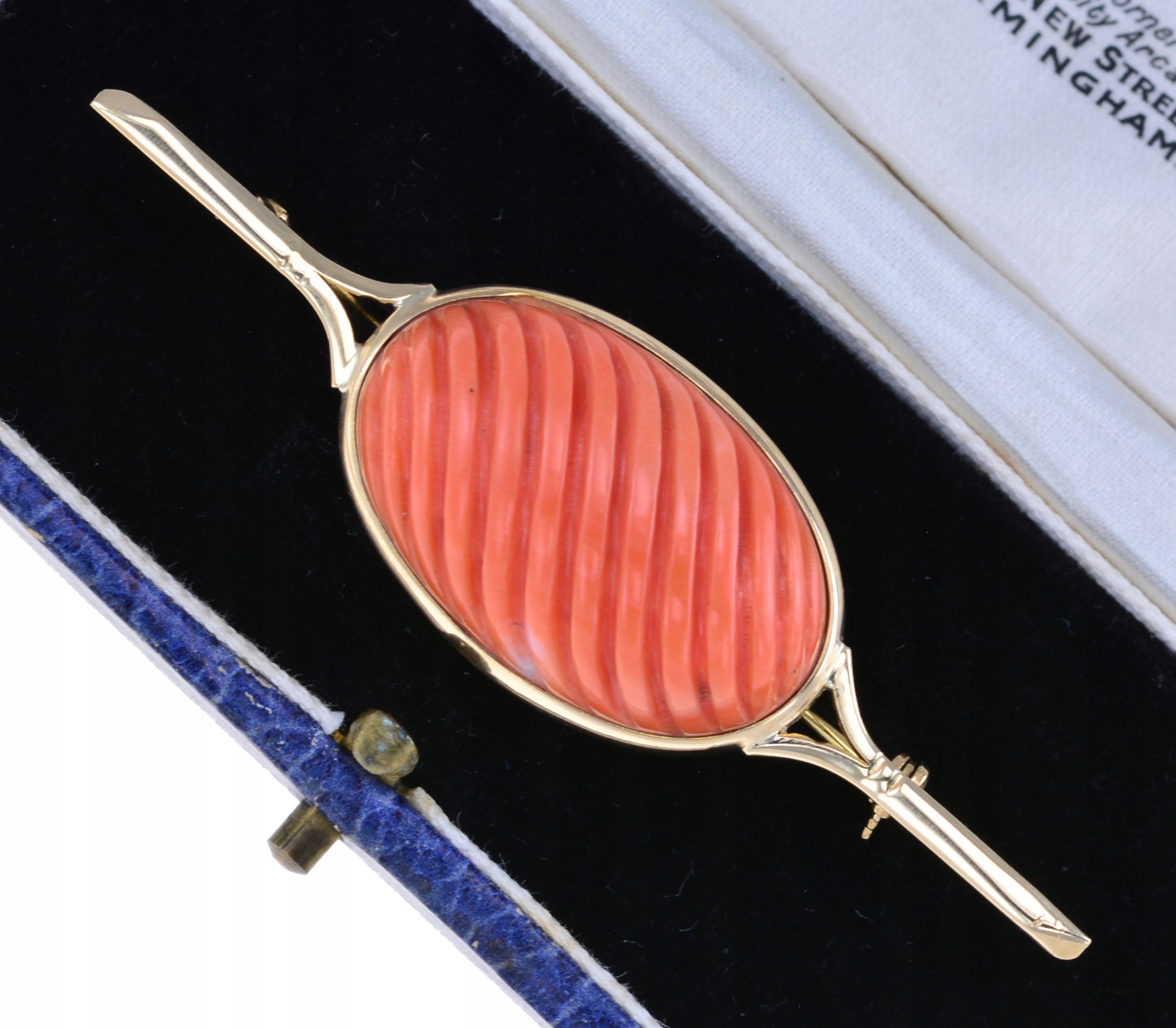 ЗОЛОТА БРОШКА З РІЗЬБЛЕНИМ КОРАЛОМ