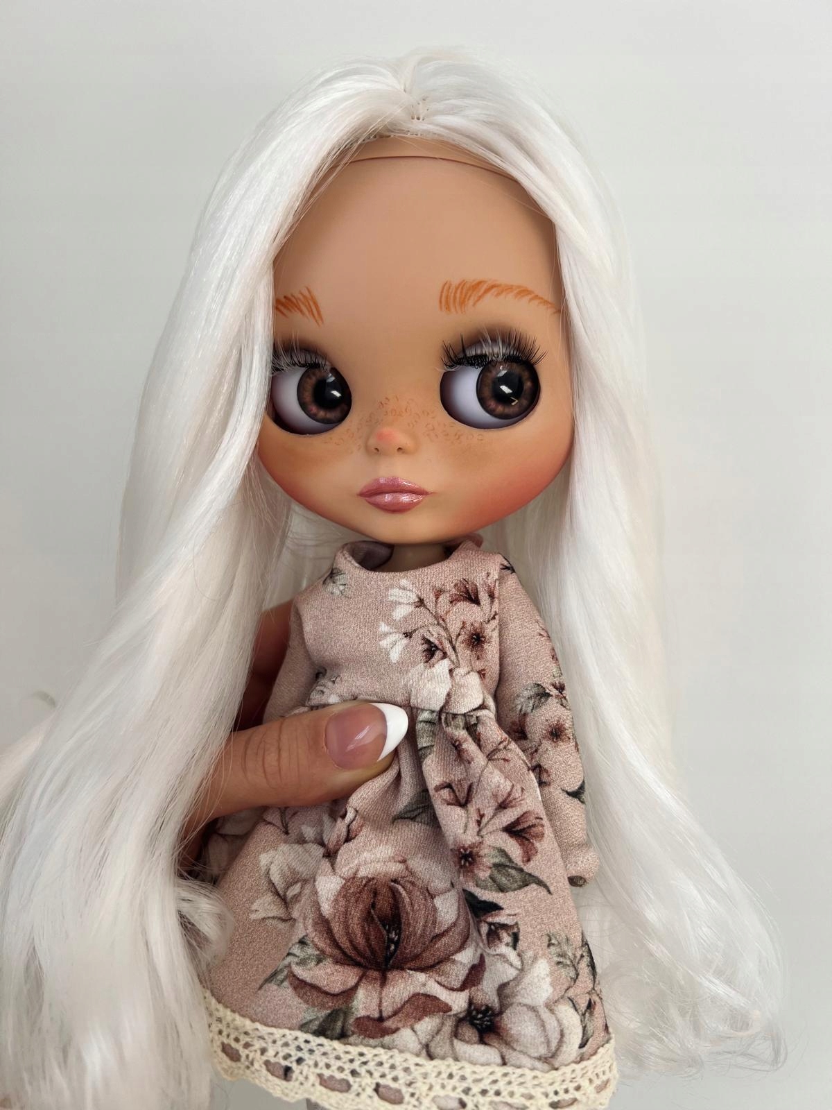 Чудова лялька з довгим білим волоссям та темним кольором - це унікальна копія, яка приваблює погляди з її прекрасним макіяжем та вишуканими деталями. Дивовижною особливістю ляльки є можливість змінювати колір та напрямок вигляду - просто потягніть декоративну струну в потилицю, щоб відкрити чотири різні версії очей. Кожен елемент стилю був зроблений вручну, з максимальною обережністю. Одяг зшиться увагою до кожної деталі, і ціле доповнюється декоративними струнами з намистинами та підвісками, які додають стилілізації ляльки унікальний персонаж. Набір також включає набір змінних рук, тому ви можете адаптувати ляльку, яка позує свої потреби. Забезпечені суглоби роблять ляльку ідеальною для фотографій та творчих розваг. Весь упакований в естетичну, елегантну упаковку, що робить її чудовою ідеєю подарунка - як для колекціонерів, так і для любителів прекрасних, унікальних ляльок.