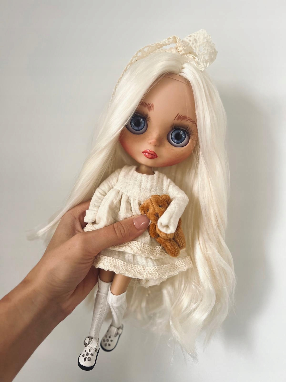 Чудова лялька з довгим світлим волоссям та темним кольором обличчя - це унікальна копія, яка приваблює зовнішній вигляд своїм прекрасним макіяжем та вишуканими деталями. Дивовижною особливістю ляльки є можливість змінювати колір та напрямок вигляду - просто потягніть декоративну струну в потилицю, щоб відкрити чотири різні версії очей. Кожен елемент стилю був зроблений вручну, з максимальною обережністю. Одяг зшиться увагою до кожної деталі, і ціле доповнюється декоративними струнами з намистинами та підвісками, які додають стилілізації ляльки унікальний персонаж. Набір також включає чарівний ведмідь та набір змінних рук, тому ви можете адаптувати ляльку, що позує свої потреби. Забезпечені суглоби роблять ляльку ідеальною для фотографій та творчих розваг. Весь упакований в естетичну, елегантну упаковку, що робить її чудовою ідеєю подарунка - як для колекціонерів, так і для любителів прекрасних, унікальних ляльок.