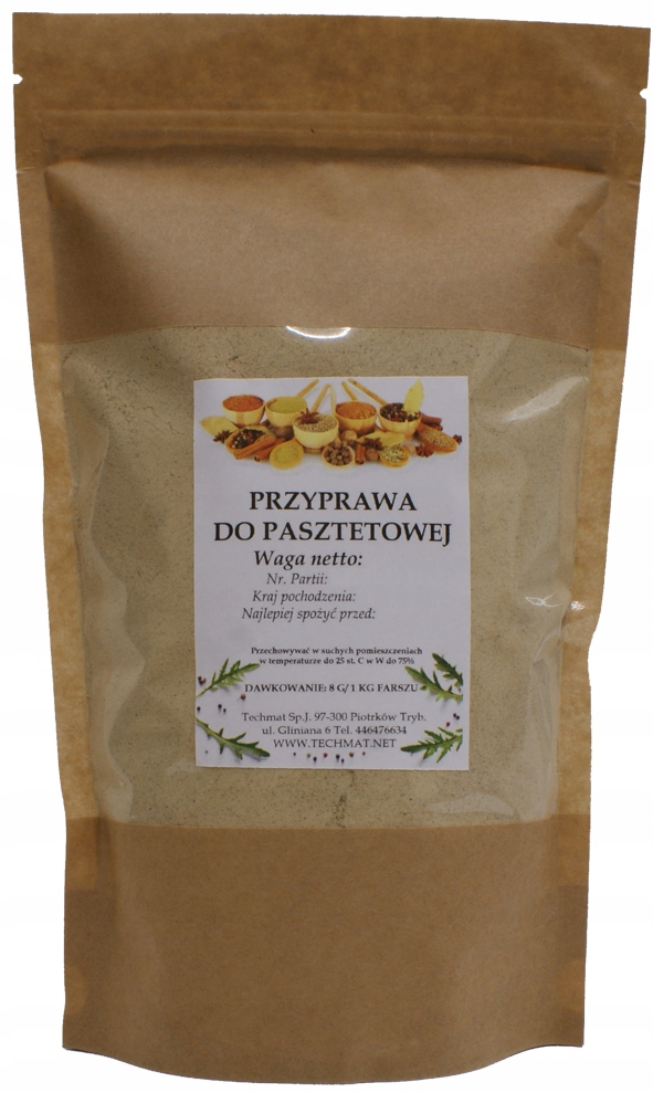 - Готова смакова суміш для паштету на основі натуральних спецій з характерним традиційним польським смаком. До складу входить цибуля, майоран, коріандр, гірчиця, перець чорний, перець гострий, імбир, мускатний горіх, кмин, селера, сіль.