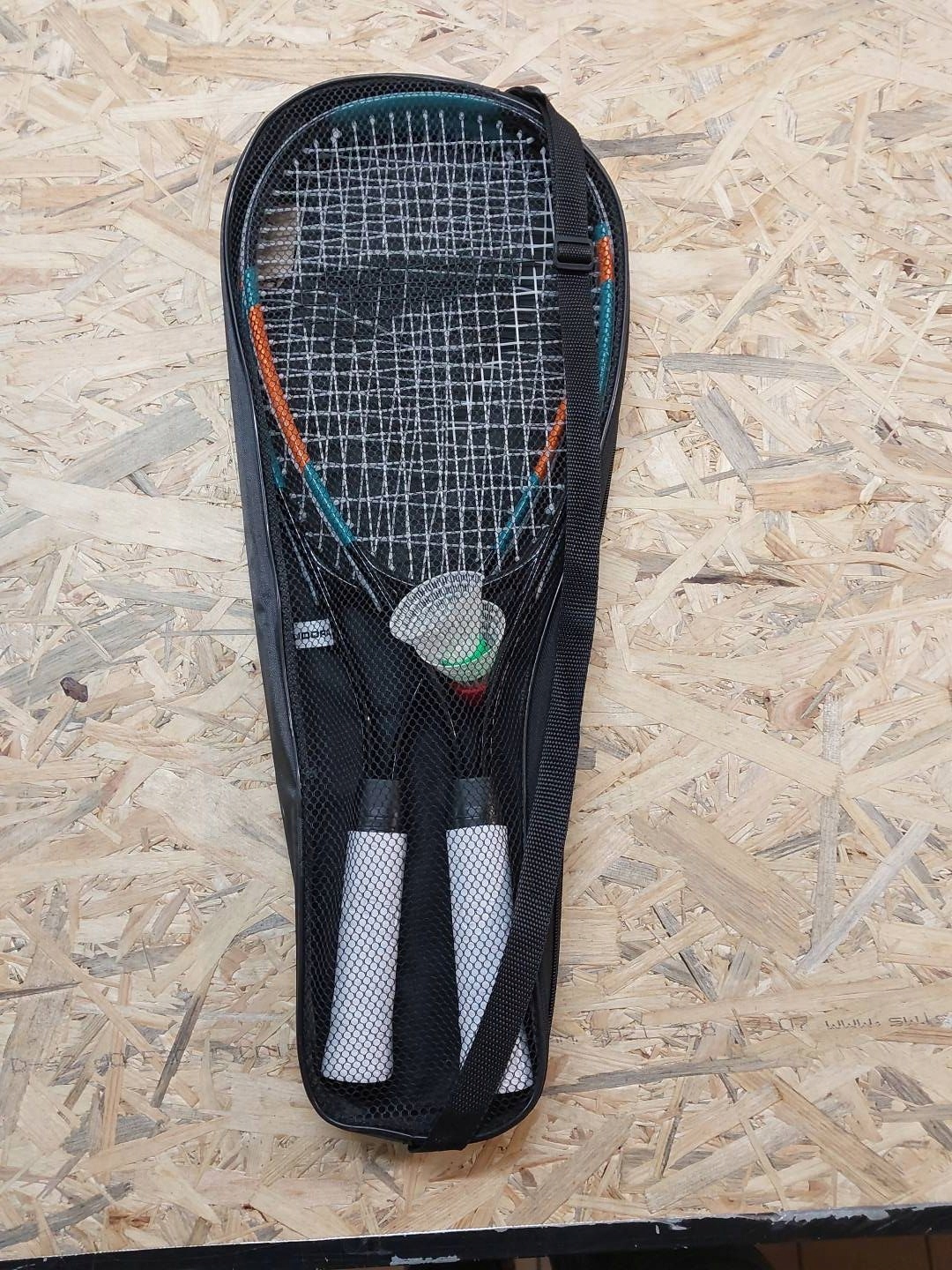 Набір HUDORA Crossminton включає дві алюмінієві ракетки довжиною 57 см і вагою приблизно 180 г кожна з міцною нейлоновою струною вагою приблизно 16 кг. Ручка обмотана професійним нековзким скотчем, завдяки чому ракетка краще лежить в руці. Обгортка додатково вбирає піт під час гри. У набір також входять три важкі дротики, які дозволяють динамічно грати. Весь комплект упакований в чохол, застібається на блискавку, з плечовим ременем для зручності перенесення. Ракетки чорно-сині, волани білі.