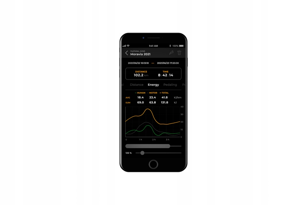 SpeedBox App – це програма, розроблена спеціально для SpeedBox B.Tuning, яка використовує технологію Bluetooth для підключення вашого електровелосипеда до мобільної програми . Після завантаження програми та підключення мобільного телефону до електровелосипеда ви побачите на своєму телефоні поточні дані та параметри поїздки. Індивідуальні поїздки можна зберігати, щоб ви могли порівнювати результати з друзями та разом контролювати їх ефективність. Тож просто насолоджуйтесь поїздкою та залиште перевірку параметрів на потім!