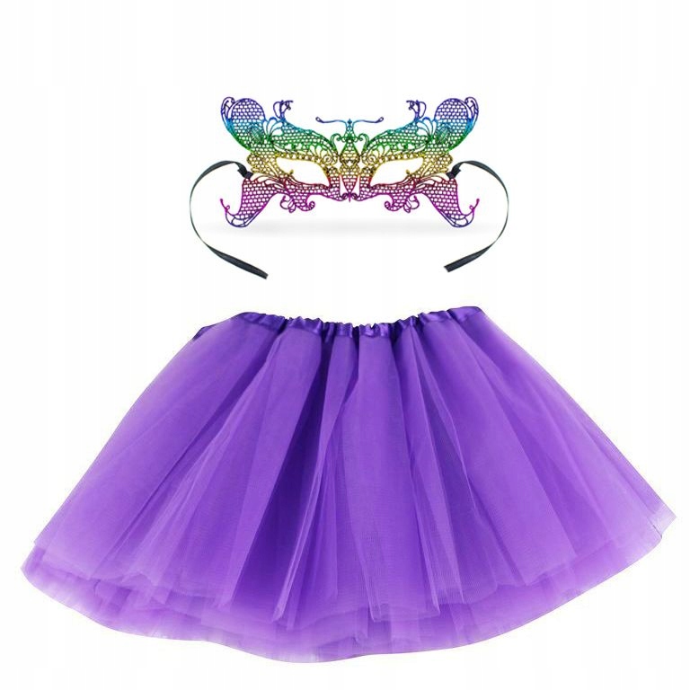 КОЛІР СПІДНИЦІ — ФІОЛЕТОВИЙ, А МАСКА — ВЕСЕЛКА (ФІОЛЕТОВИЙ З РОЖЕВИМ, ЖОВТИМ, ЗЕЛЕНИМ ТА СИНІМ).