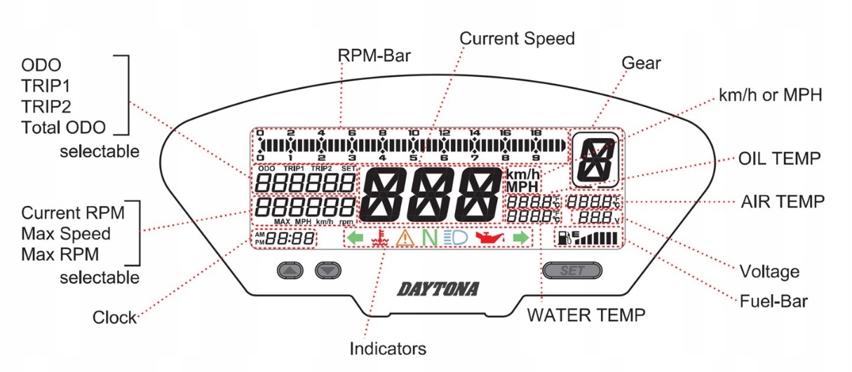 DAYTONA – БАГАТОФУНКЦІОНАЛЬНИЙ Спідометр із КОПІТОМ DEVA01
