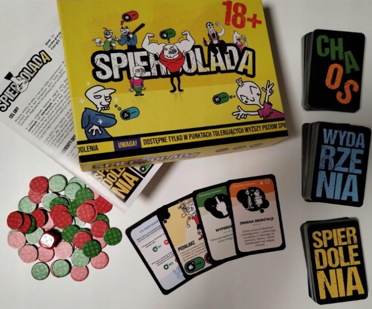 Spie*dolada — це унікальна карткова гра для дорослих, яка відображає реальне життя: боротьбу з власними помилками. Перемагає той, хто першим їх переможе! Ви починаєте гру, отримуючи 3 F*cks up, і ваше завдання атакувати людей і позбавлятися від них. Читайте картки подій, смійтеся над текстами Zwyrol, виконуйте інструкції та нагороджуйте жетонами. Зелені елементи рятують вашу дупу та змушують позбутися непотрібних карток, червоні лише погіршують самопочуття та змушують програвати більше.