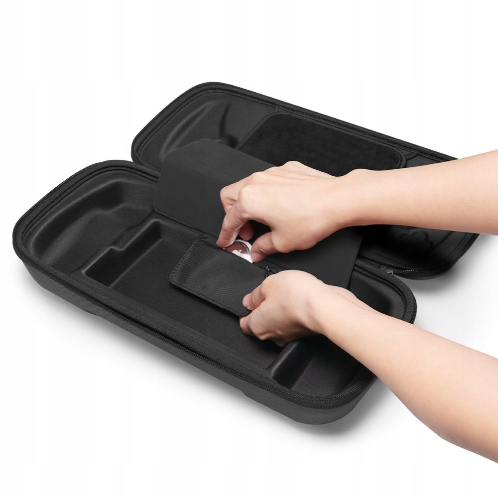 Закрите кріплення на липучках - це додаткова перевага Spigen Rugged Armor Pro. Закінчивши замшеву підкладку, гарантує стабільну ручку, захищаючи як консоль, так і екран від пошкоджень та потрясінь. Крім того, у випадку є прихований простір для зберігання для пристрою для відстеження, що збільшує безпеку під час подорожі.