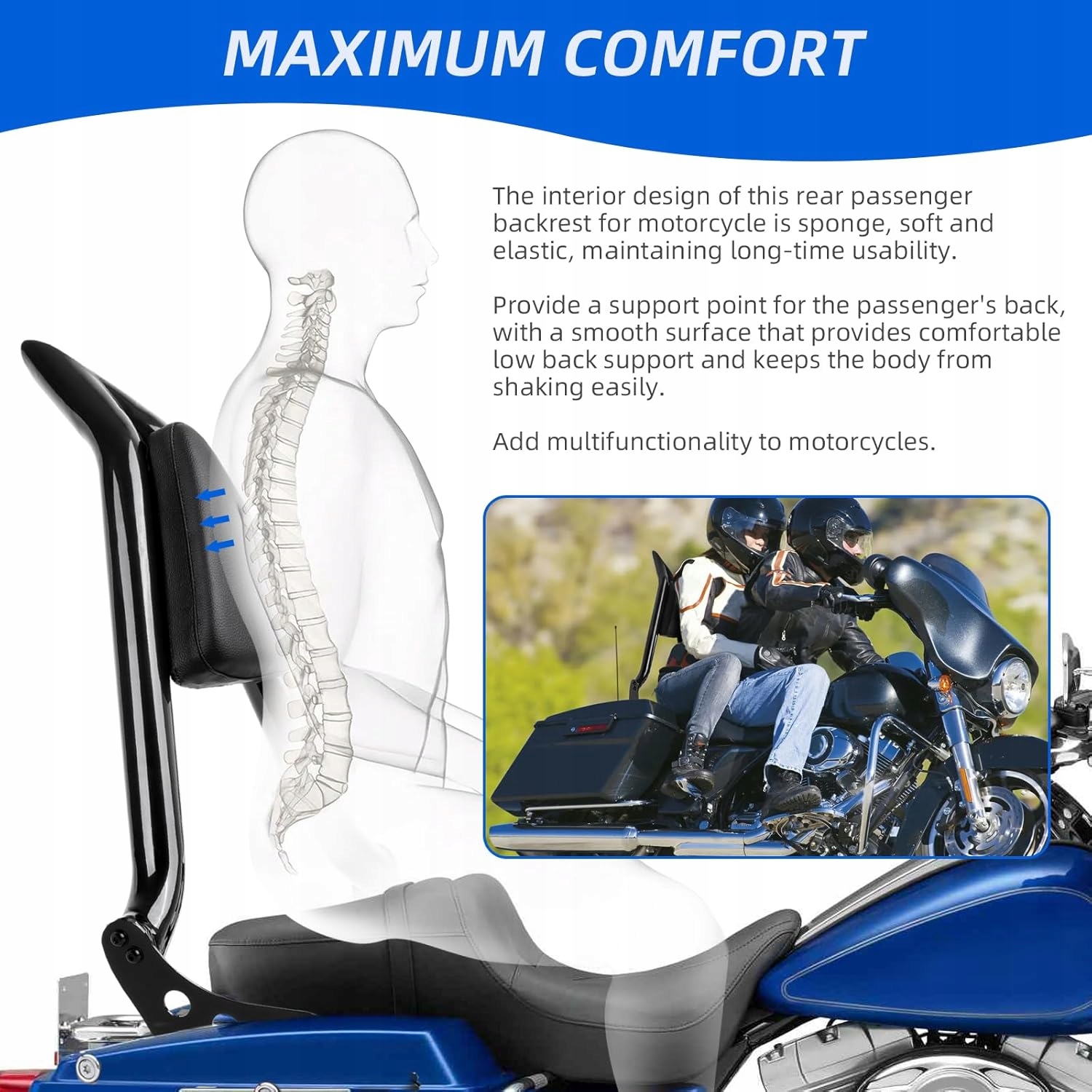 【Високоякісний матеріал】 Глянцевий чорний кронштейн Задня пасажирська планка виготовлений з високоякісної міцної сталі з ідеальним порошковим покриттям для забезпечення стійкості до іржі, стабільності та довговічності, а також стійкості до пошкоджень. Подушка спинки пасажира виготовлена з водонепроникної поліуретанової шкіри з вбудованою губкою високої щільності.
