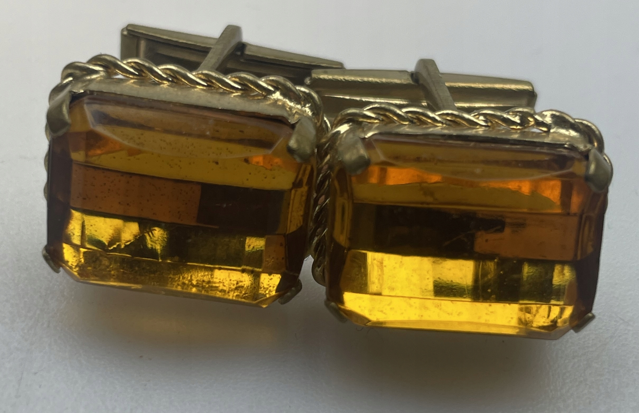 Spinki do mankietów bursztynowe Vintage PRL w typie art deco lata 60-te