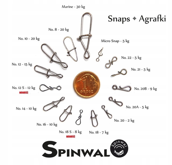 Міцні та прості у використанні шпильки є дуже важливим елементом кожного набору, який часто визначає успіх риболовлі. Дуже міцний пружинний сталевий карабін з широкою дугою. Вони характеризуються виключно високою вантажопідйомністю. Карабіни не прогинаються навіть при найбільшому навантаженні, що забезпечує оптимальну безпеку під час витягування.