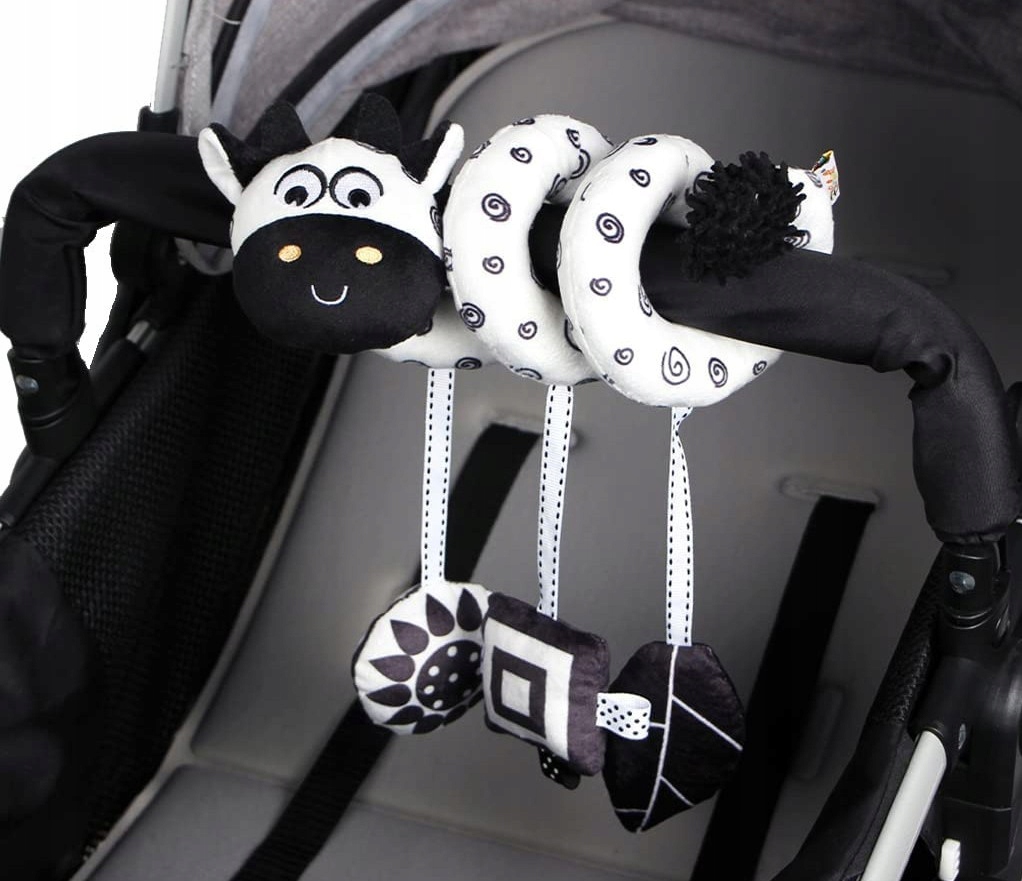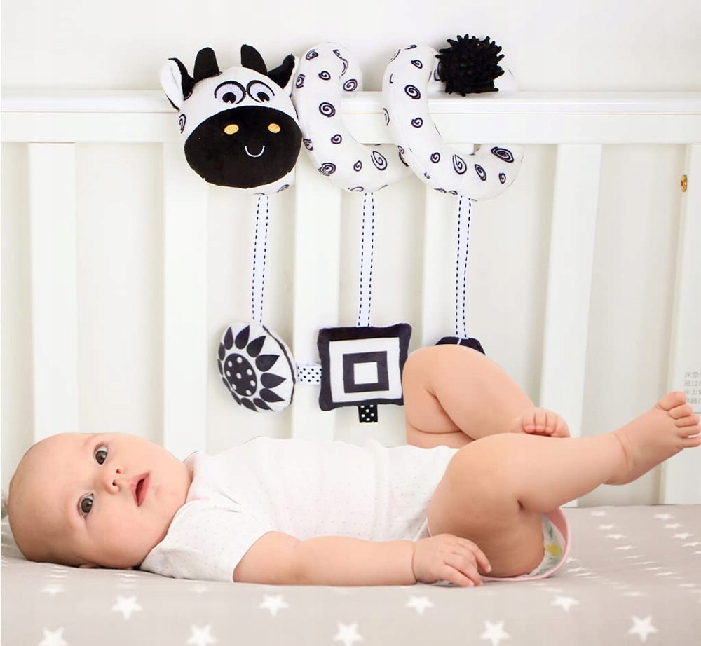 бавовняна весна, повна підвіски та брязкальців, стане найкращою іграшкою дитини, привертаючи його увагу та першу зустріч із сенсорними та білими білими кольором.