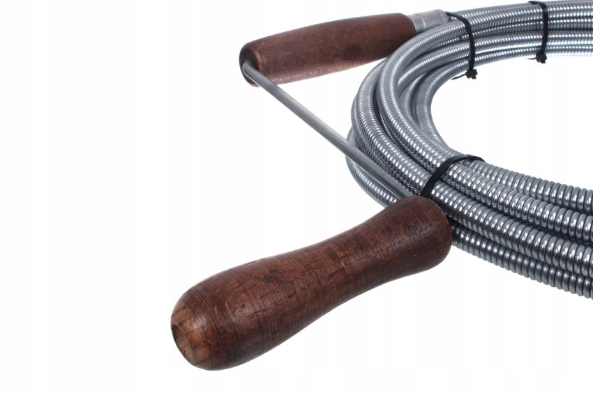 Спіраль використовується для деблокування каналізаційних труб. Він виготовлений з оцинкованого пружинного дроту, що робить його стійким до токсичних середовищ. Використана подвійна дерев’яна рукоятка забезпечує максимальний комфорт роботи, а спеціально розроблений наконечник гарантує правильне вгризання забивання та подальше його видалення.