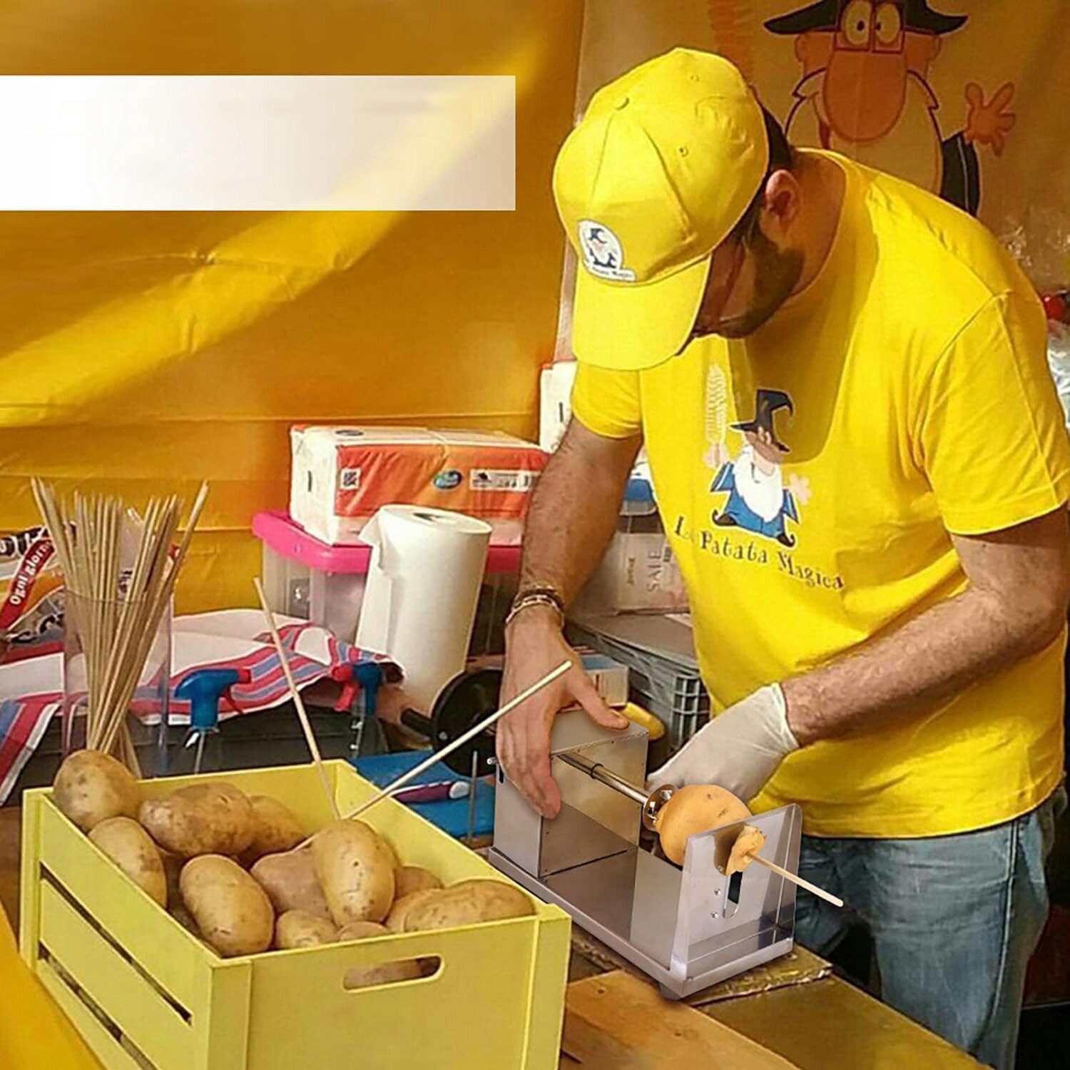 🥔【ШИРОКЕ ЗАСТОСУВАННЯ】 За допомогою цієї машини картоплю можна зручно та швидко перетворити на кручені картопляні чіпси, картоплю-торнадо та вегетаріанські закуски. Ви також можете використовувати цей інструмент для нарізання моркви, цибулі та цукіні.