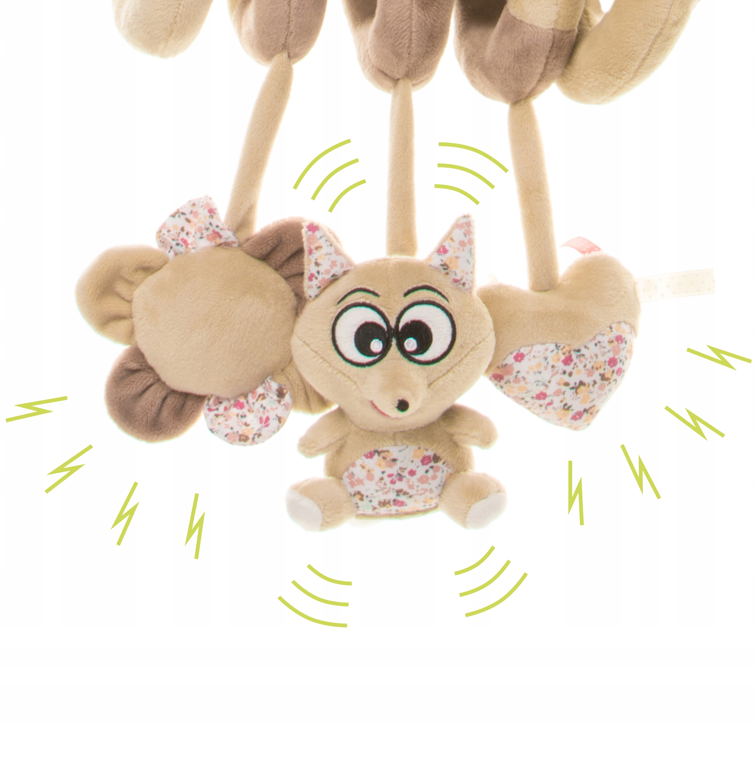 плюшева спіраль - це інтерактивна іграшка, виготовлена з різних матеріалів, що стимулюють відчуття дотику дитини. Іграшка не тільки м’яка і приємна на дотик, але й оснащена підвісками з функцією брязкальців та Пісчека, що забезпечує надихаючу розвагу для наймолодших. Сенсорний.