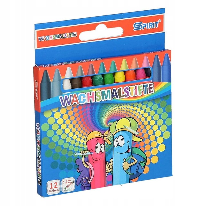 SPIRIT KREDKI ŚWIECOWE WOSKOWE WIELOKOLOROWE 12 szt ŻYWE KOLORY MALOWANIE