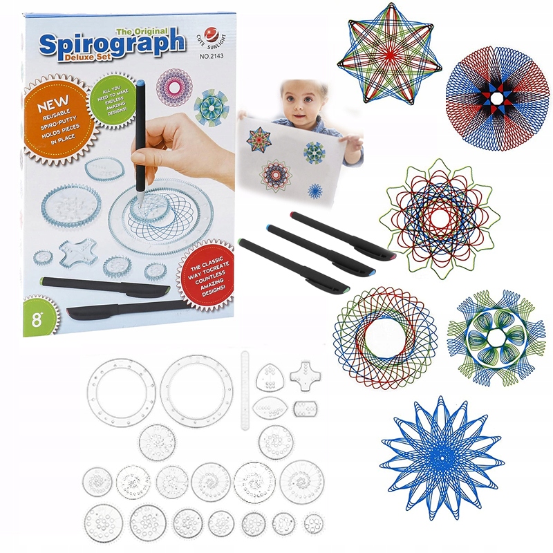 Spriograf поєднує малювання та елемент рукоділля, щоб надати дітям нескінченний простір для творчості. Цей унікальний набір є ідеальним поєднанням навчання та розваг, дозволяючи дітям створювати зображення за допомогою кольорових фломастерів різноманітність трафаретів .