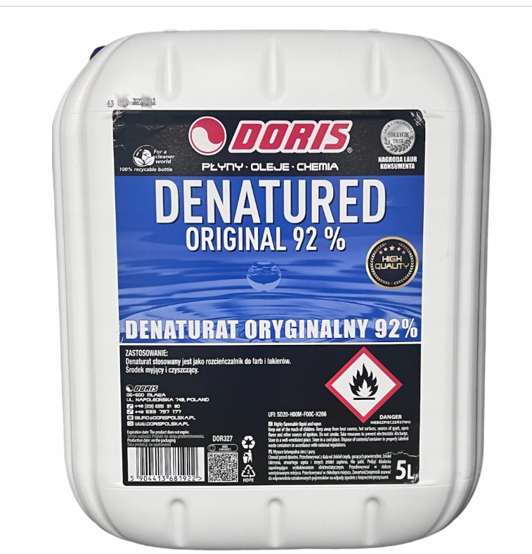 Спирт денатурований БІЛИЙ, ПОВНІСТЮ ЗАБРУДНЕНИЙ 5л 92%